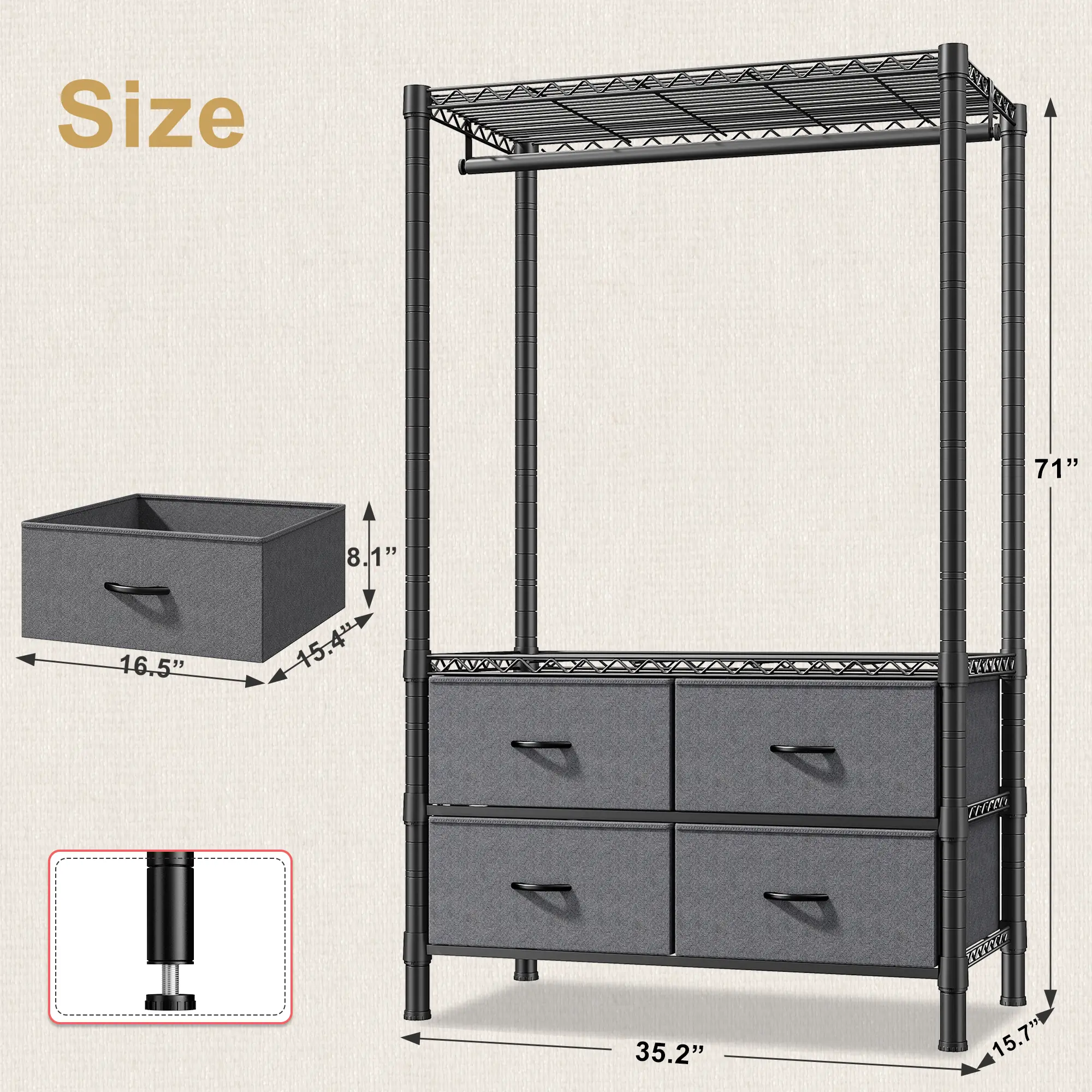 Compact Yet Spacious: 15.7"D x 35.8"W x 71"H portable hanging closet rack perfect for bedrooms, living rooms, closet or apartments — fits small spaces while maximizing storage.