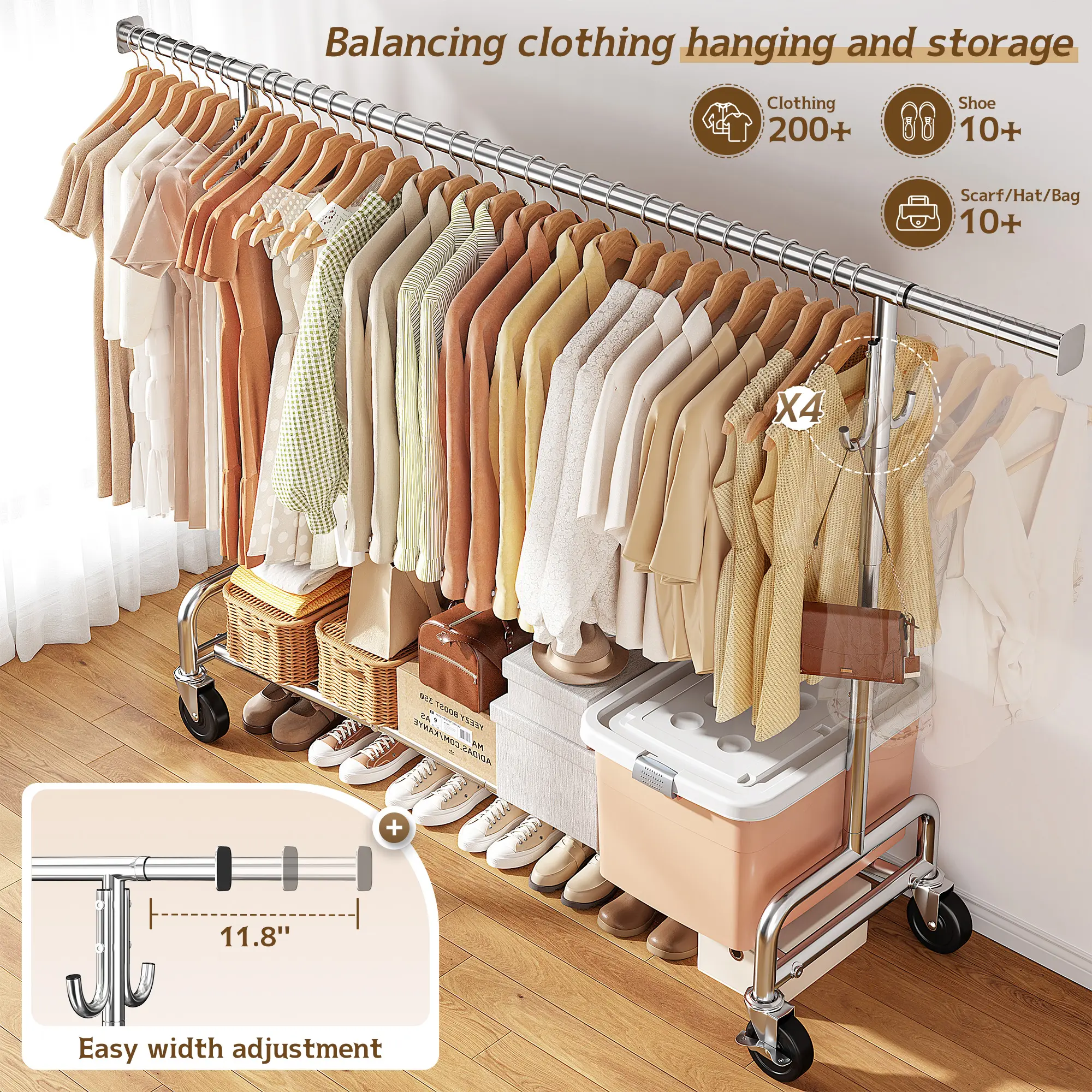 I love that the clothes rack holds plenty of shirts and pants and can be moved anywhere I want. Thank You!