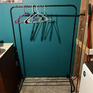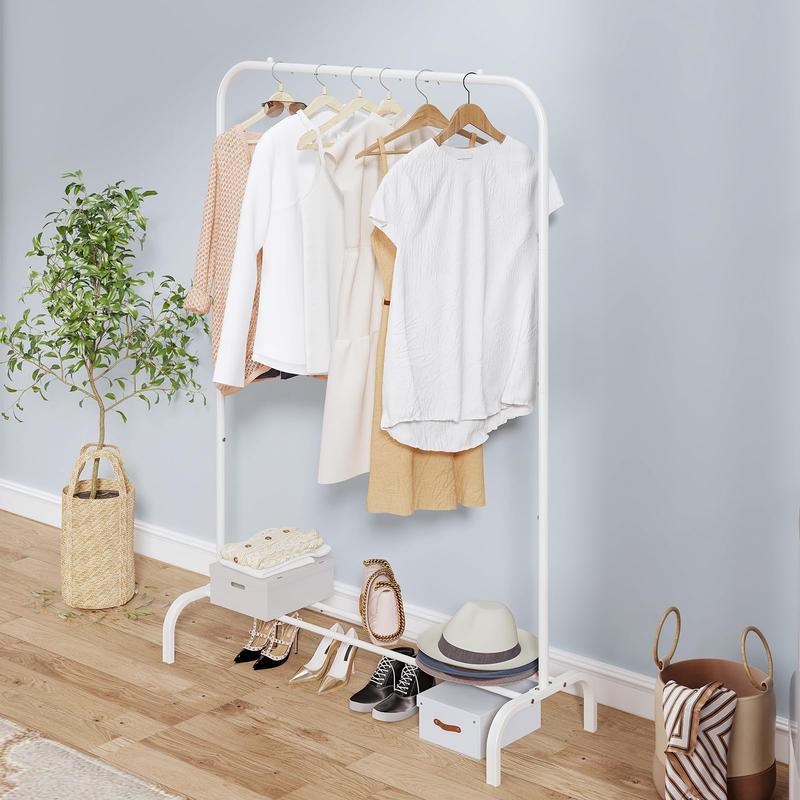 This garment rack is integrated with a hanger and 1 bottom rack for storing your shoes or cases. This rack is easy to move freely you need. This modern minimalist hanger and its glossy finish match most spaces in the home or workplace. It can also be used as decoration in your home. The unit frame is easy to assemble, follow the instructions and use the tools included in the package