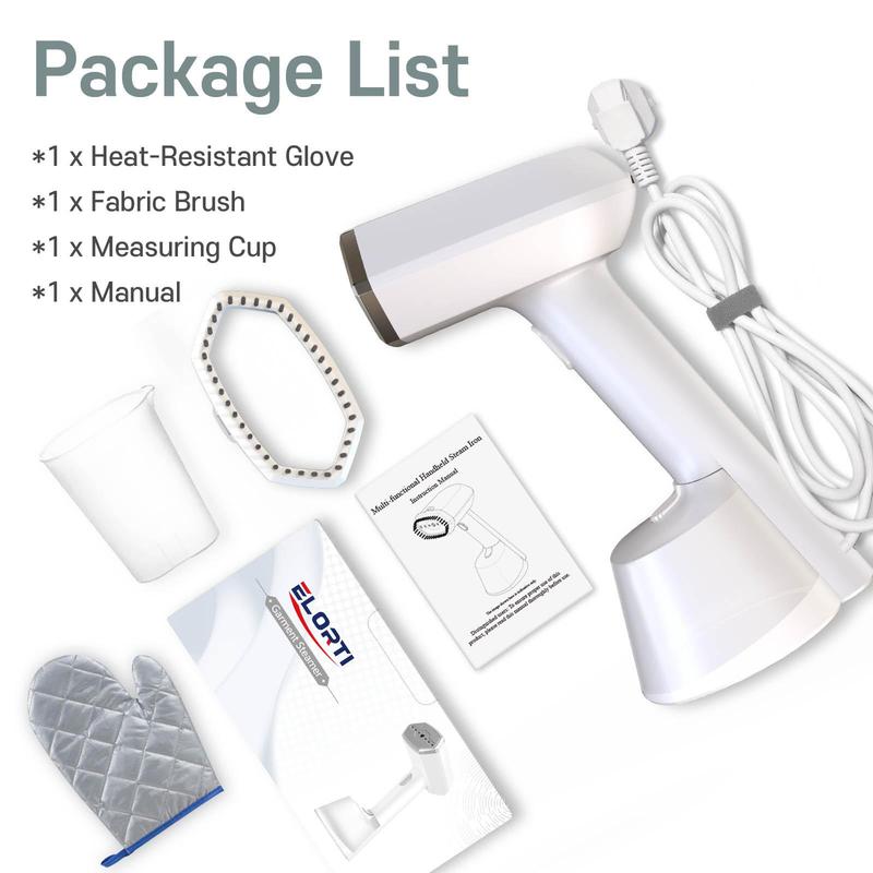 ·2025 Upgraded Clothes Steamer: ELORTI Handheld Steamer perfect for all fabrics with a fast 10-second heat-up and 20 minutes of continuous steam. Compact and lightweight, it conveniently fits in your backpack for travel ease