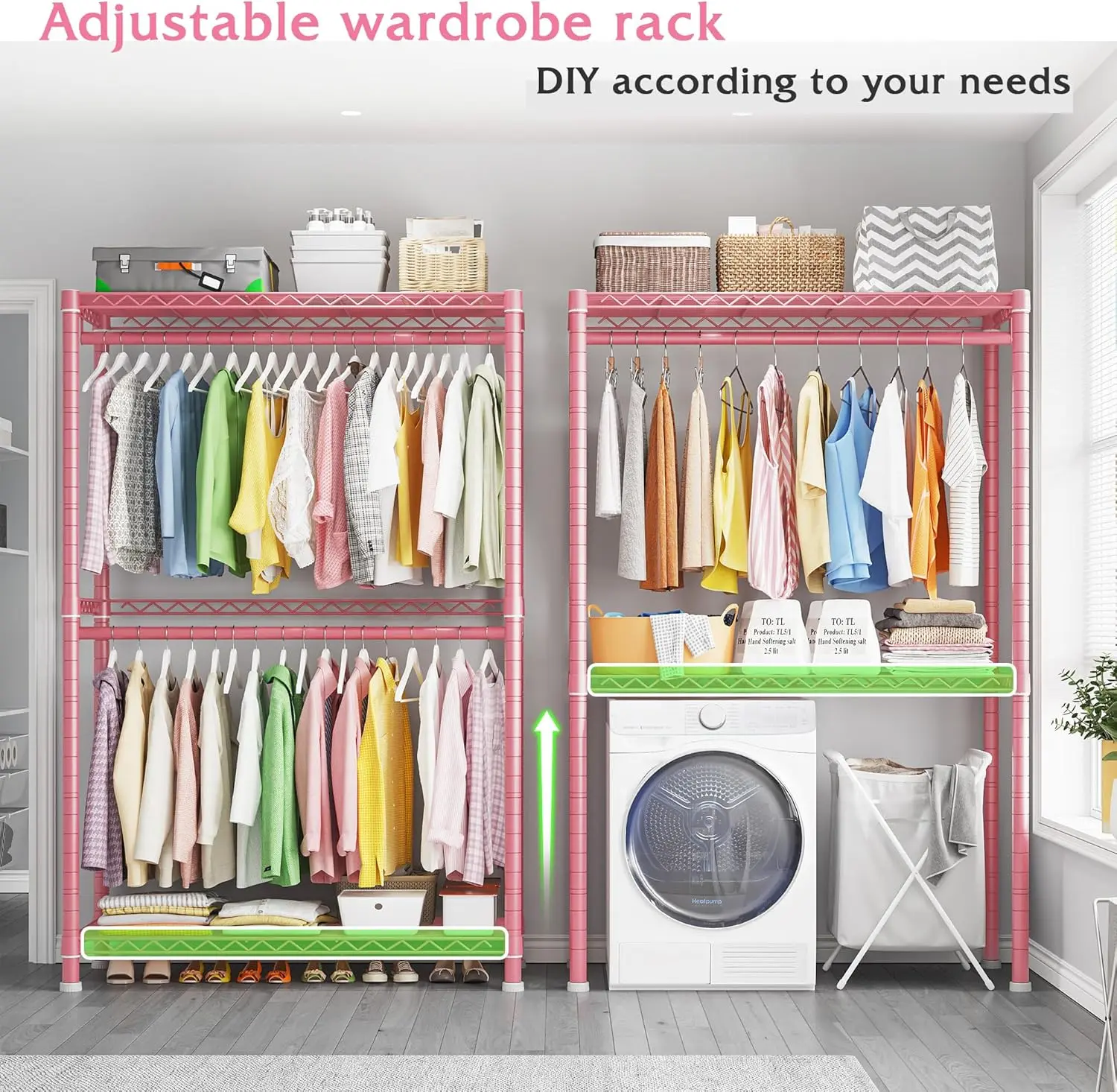 ·【Multifunctional Portable Garment Rack】 With the help of this heavy duty clothes racks for hanging clothes, storage space is created in tight spaces, with a compact design suitable for corners, apartments, bedrooms, clothing stores, walk-in closets, cloakrooms, laundry, etc.