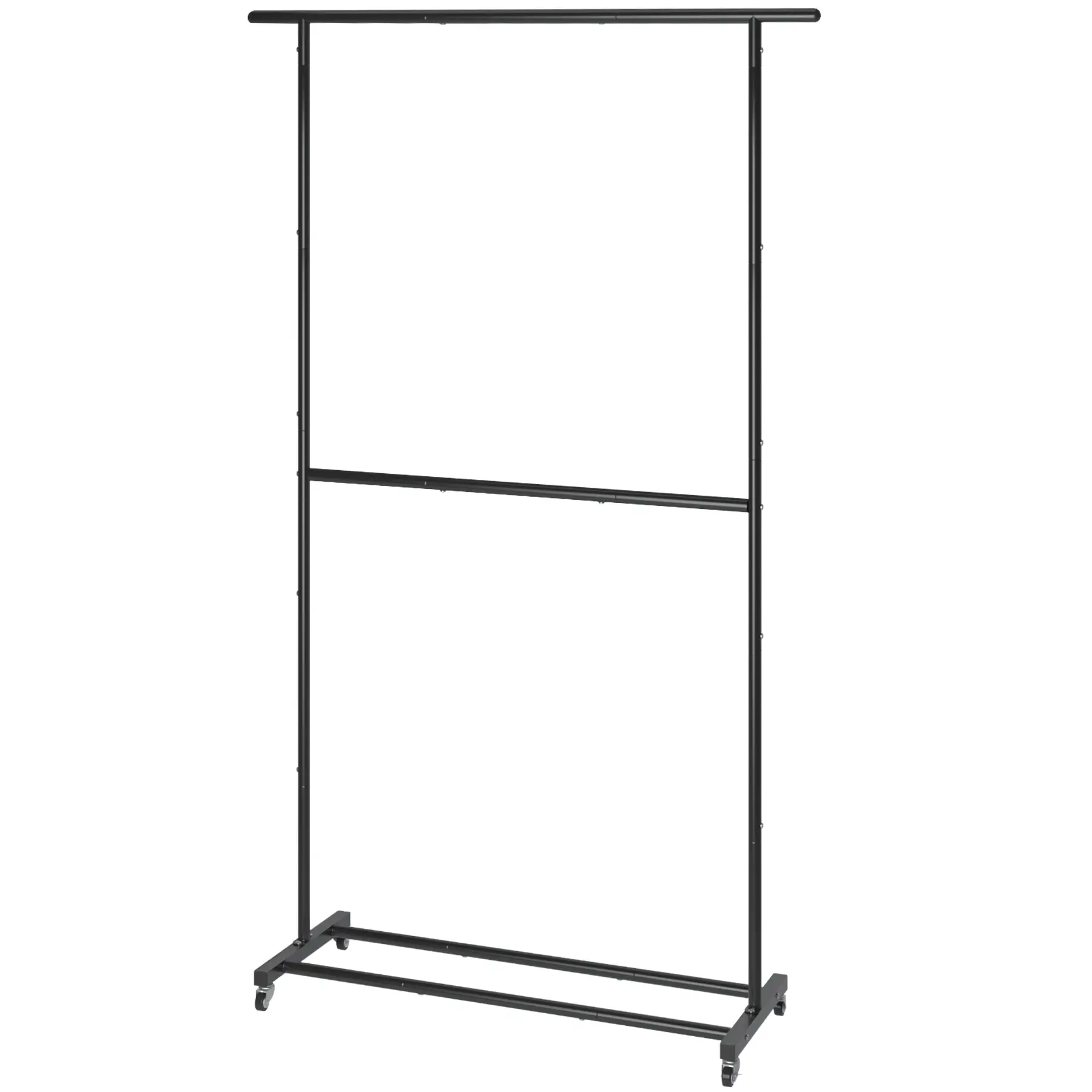 Extremely easy set up. Love that you can roll it around. Top and bottom rack works perfectly for displaying clothes.