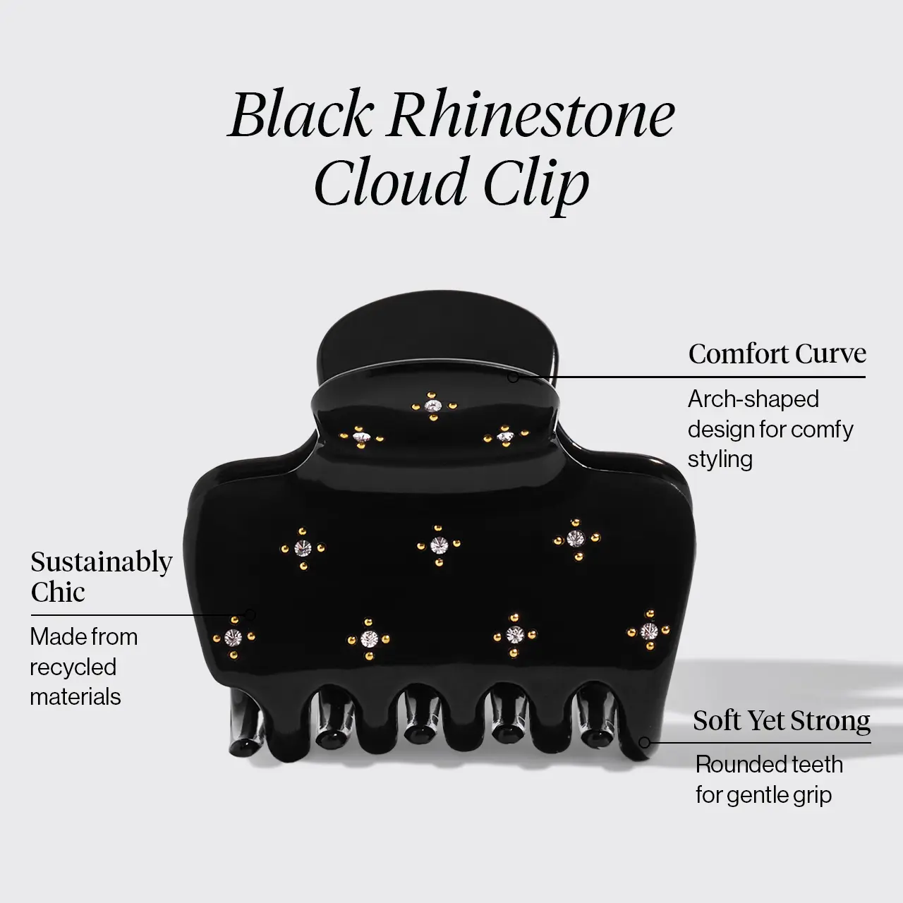 5. Recycled Plastic Medium Rhinestone Cloud Claw Clip - Black