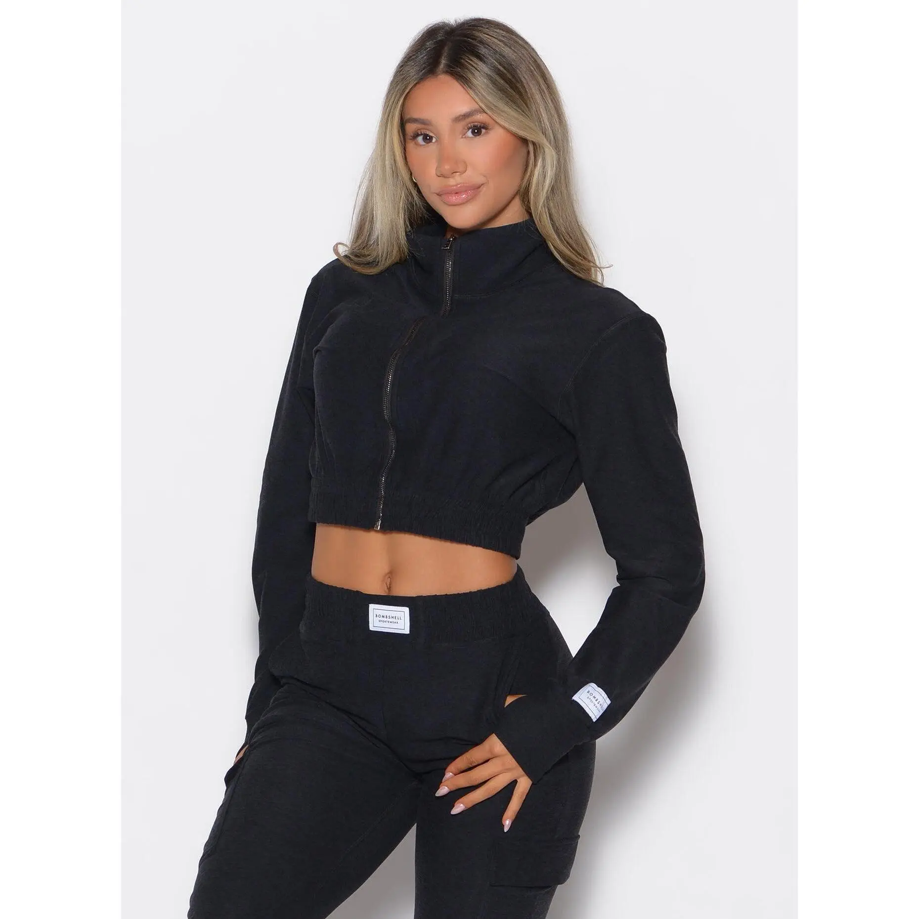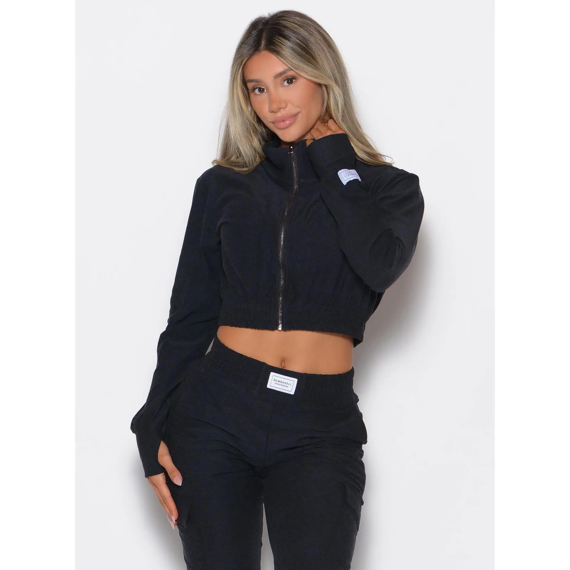 Meet the Cloud Crop Jacket, your go-to for everyday wear and lounging. With a mock high neck and full zip front, this jacket is both versatile and stylish. Thumb holes and scrunch detail add a contemporary touch, while the flatlock detailed stitching enhances durability. Made from light, airy fabric, it’s incredibly comfortable and pairs perfectly with our cloud shorts. Finished with a woven branded label, this jacket combines practicality with a chic, modern look and pairs perfectly with our cloud shorts and joggers.