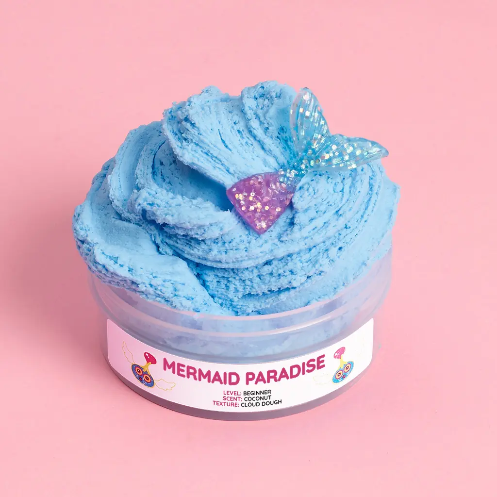 This Sloomoo Mermaid Paradise Slime is perfect for beginners. It features a cloud dough texture and a coconut scent. The size is 4oz, making it a delightful and manageable slime experience. 🌴