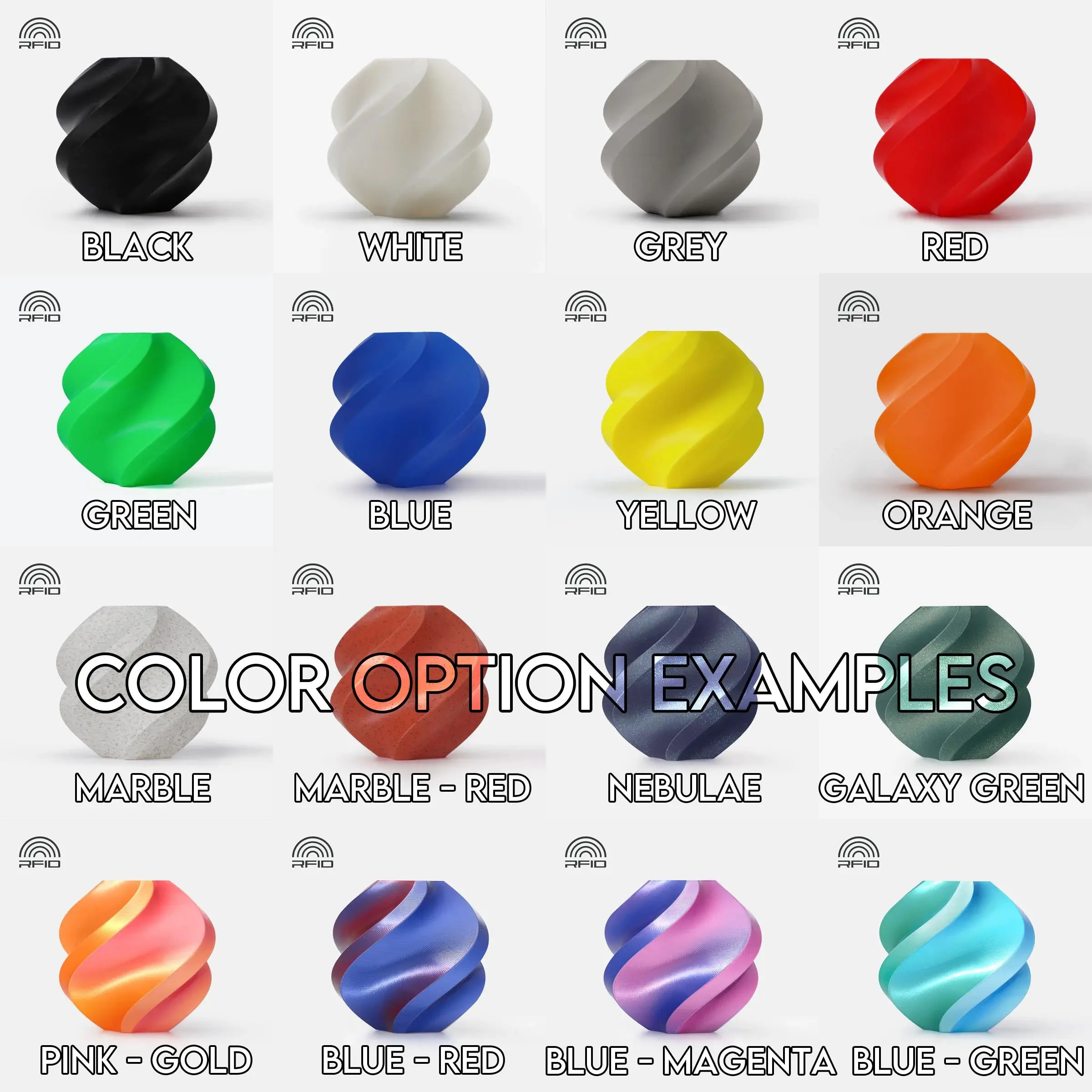 For the silk and gradient colors, the exact distribution of each color will vary per item due to the nature of creating them. One might start with more of one color before transitioning between them or vice versa.