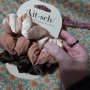 Kitsch scrunchies.These cloud-style scrunchies are a soft, stylish accessory designed to elevate everyday hairstyles with gentle comfort and a bit of volume. Made from eco-conscious recycled fabric, this 3-piece set in a warm rosewood neutral tone includes three puffy scrunchies that are perfect for ponytails, buns, or even worn on the wrist as a fun accessory.  #kitschscrunchies #fypă‚· #viralvideo #creatorsearchinsights #shopwithme