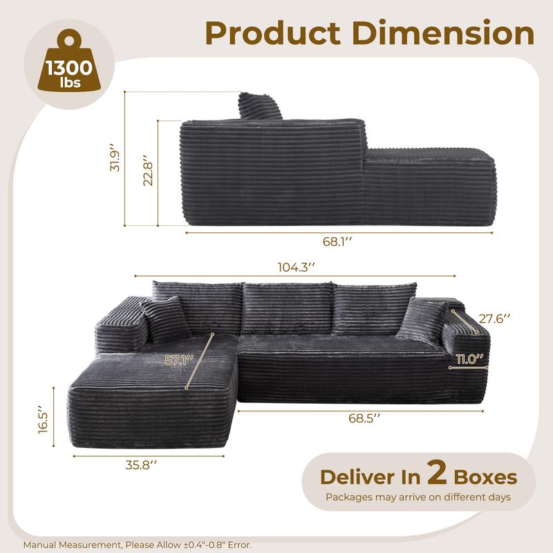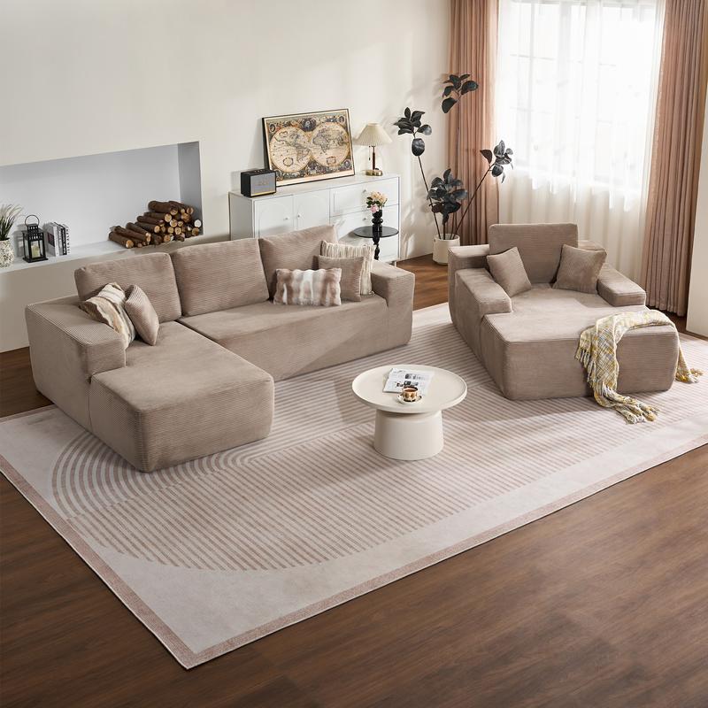 Beige Plush Corduroy Left Chaise+Sofa Bed