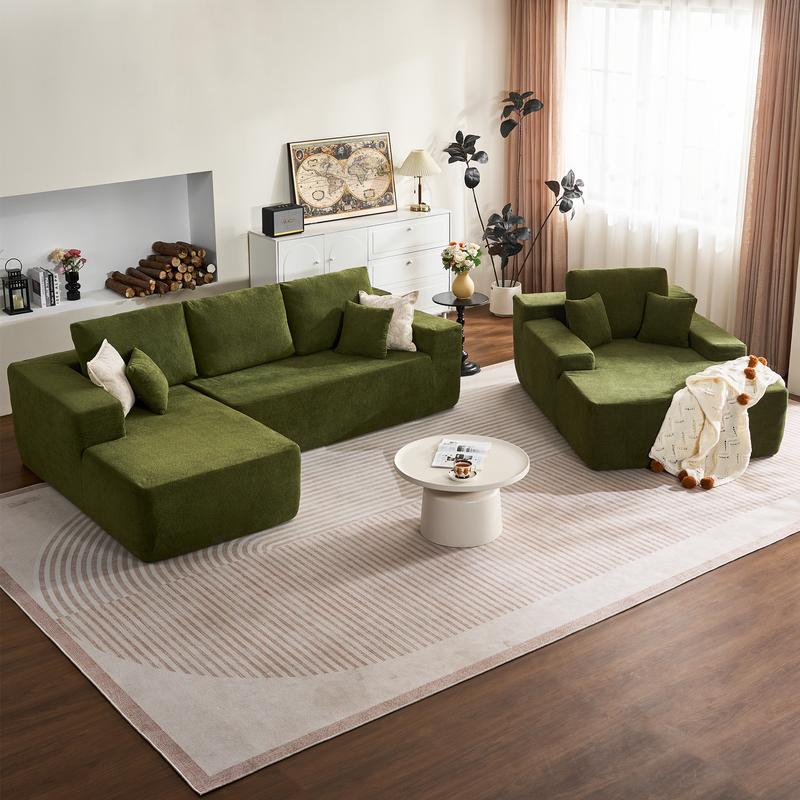Green Cloud Velvet Left Chaise+Sofa Bed