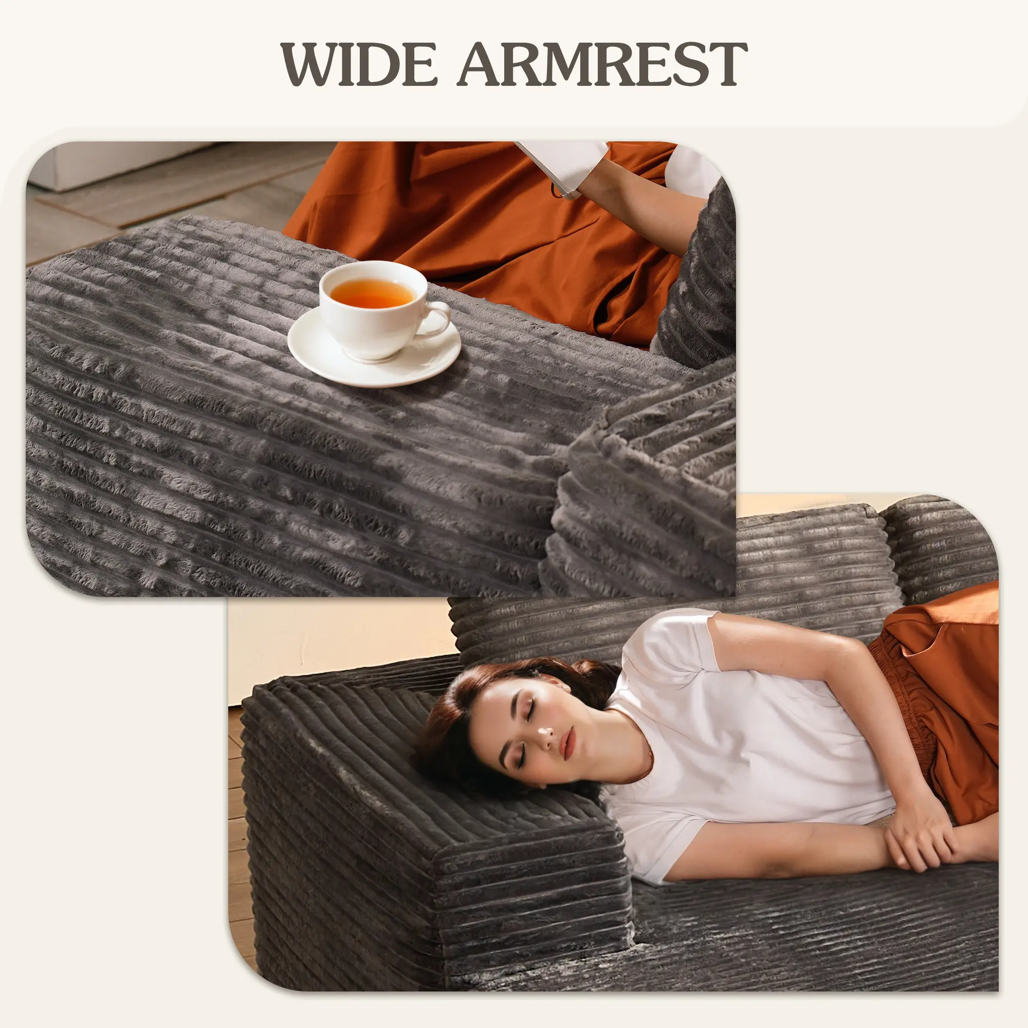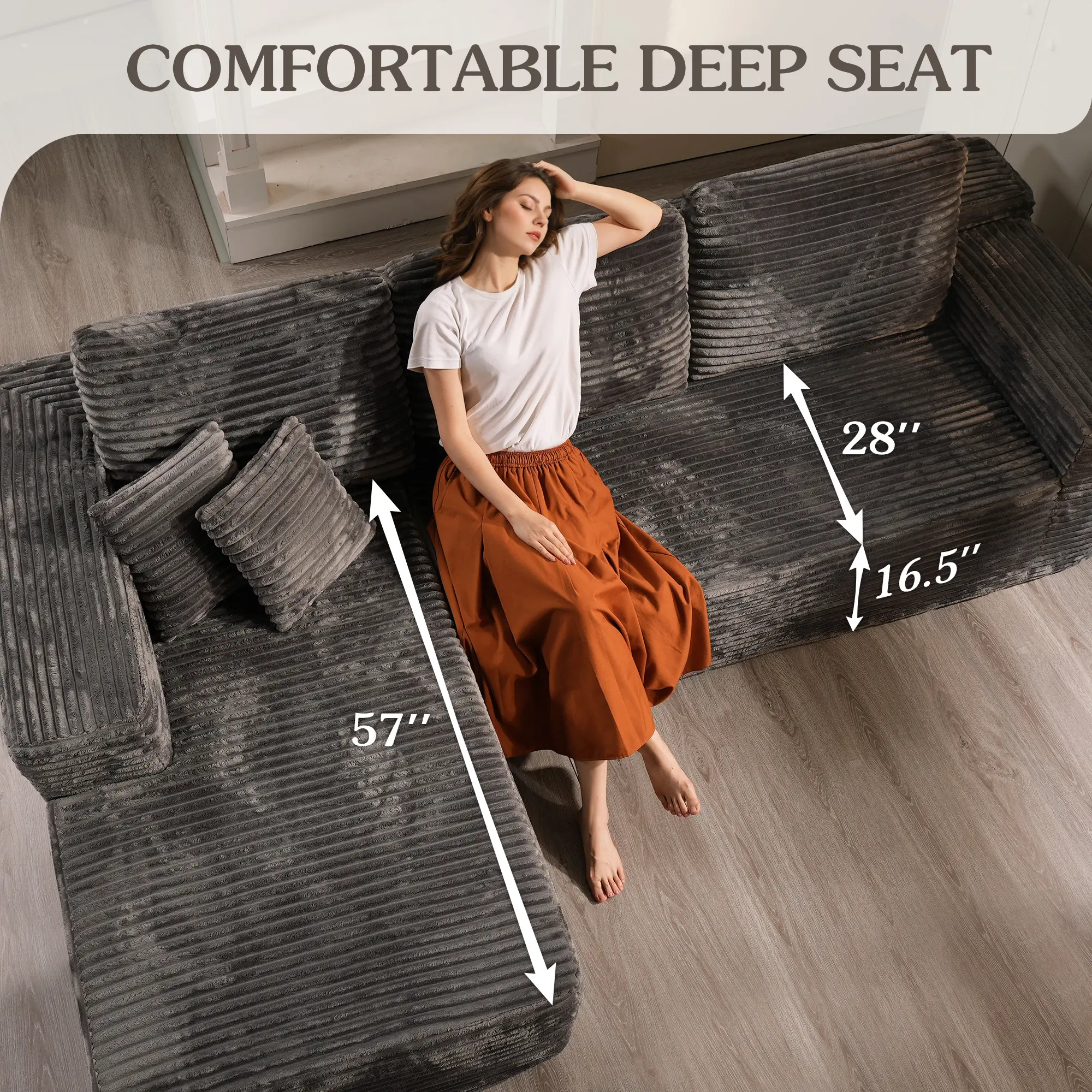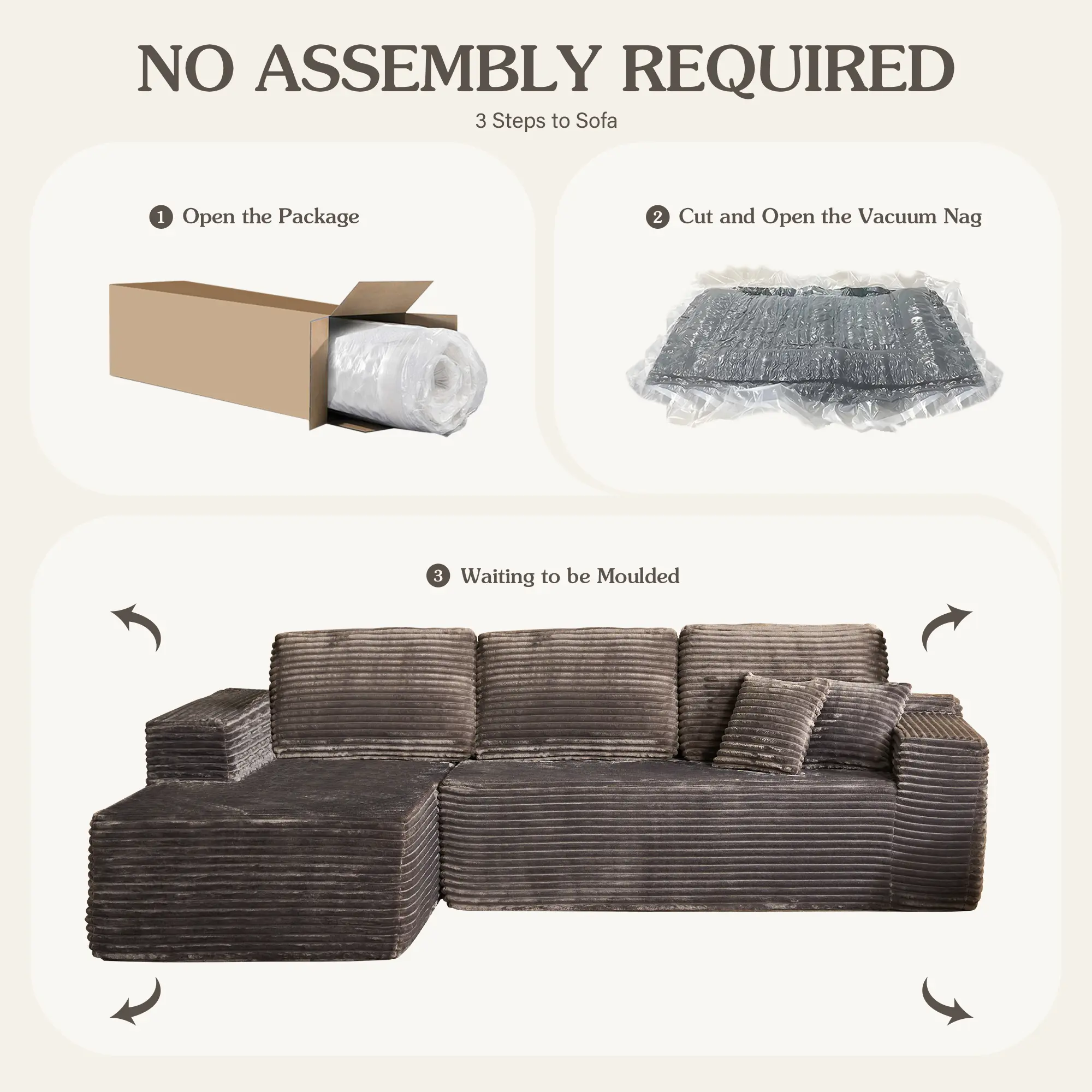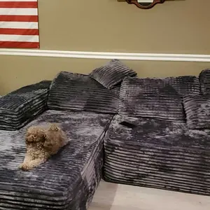The grey Plush corduroy chaise and sofa is beautiful. It was so easy to set up. Comfortable.