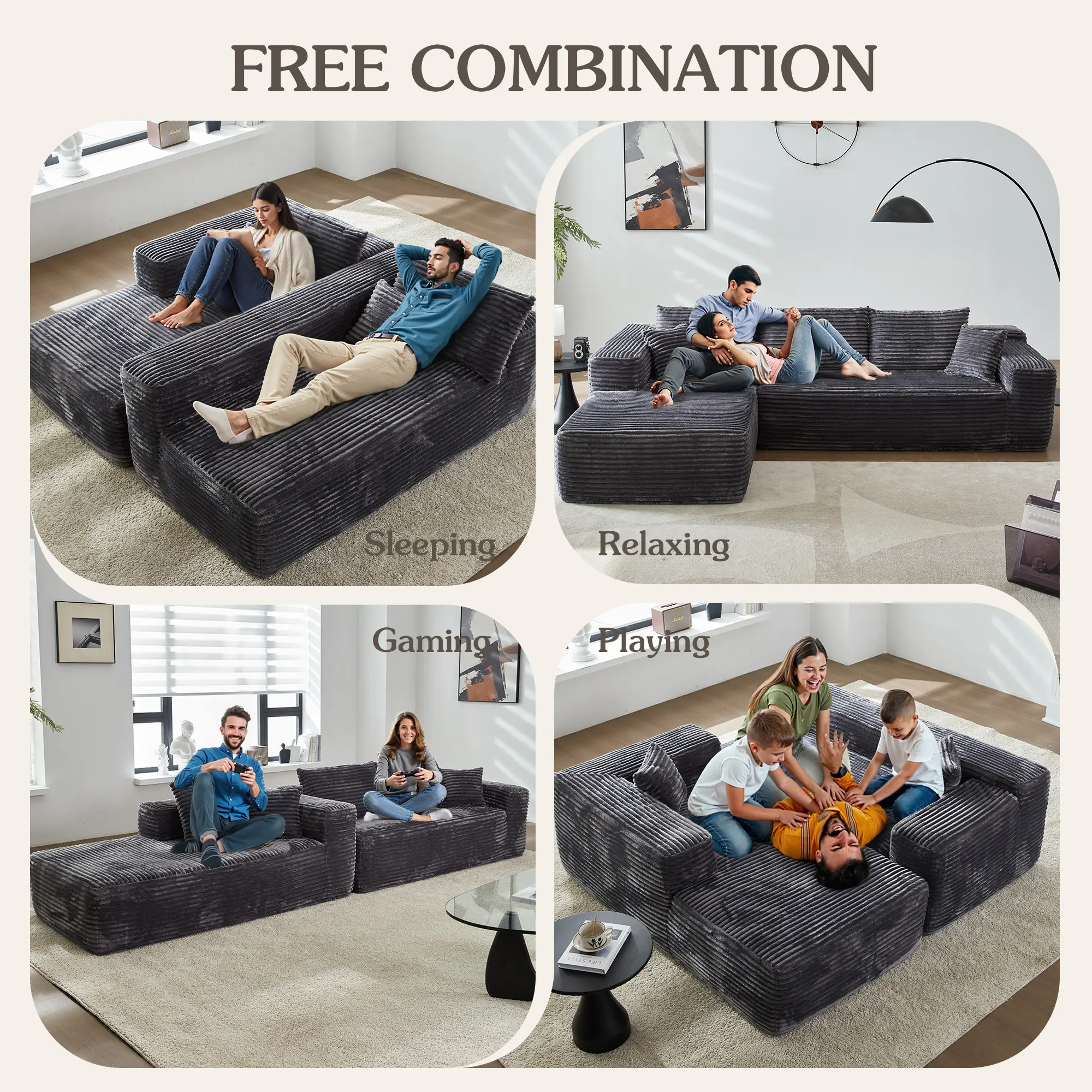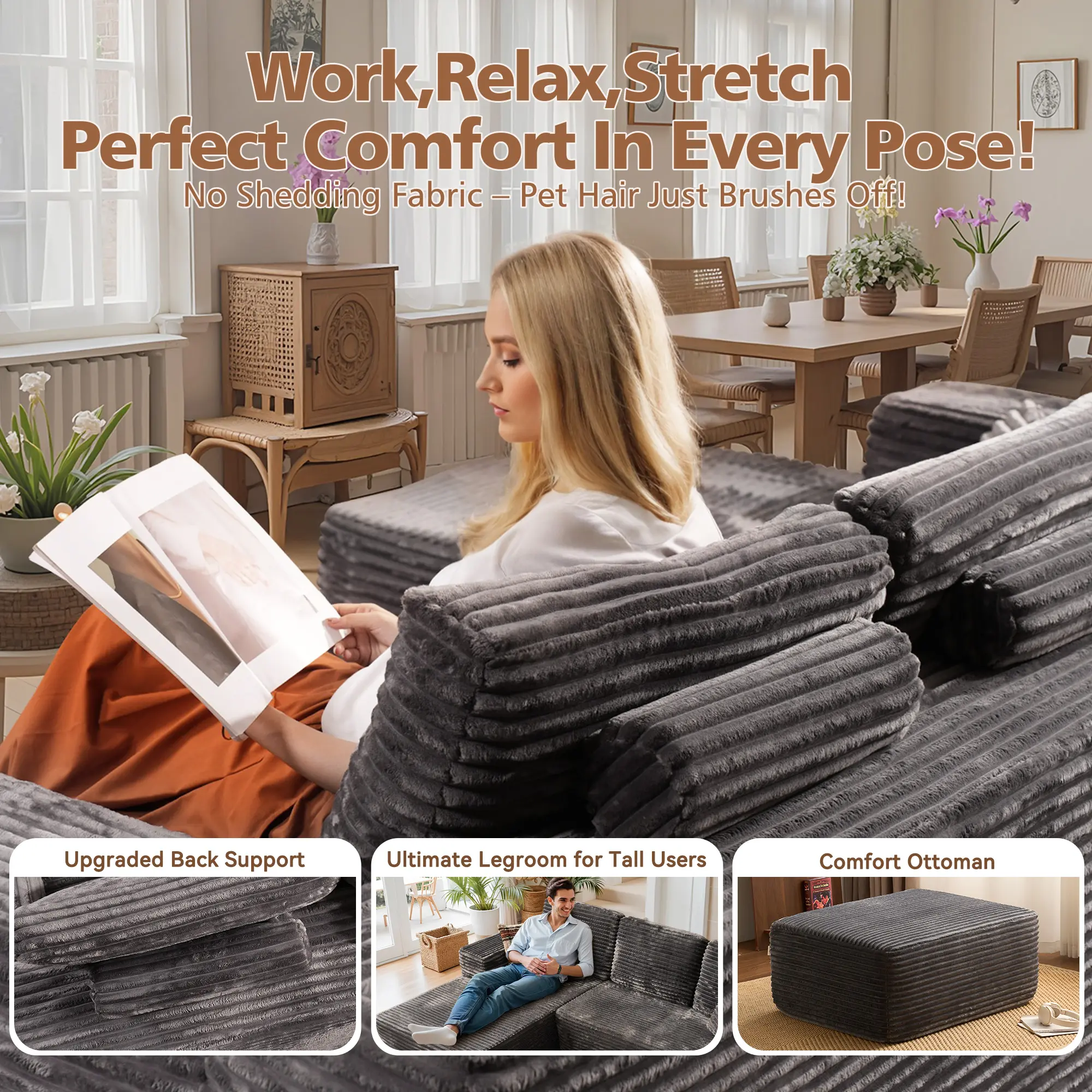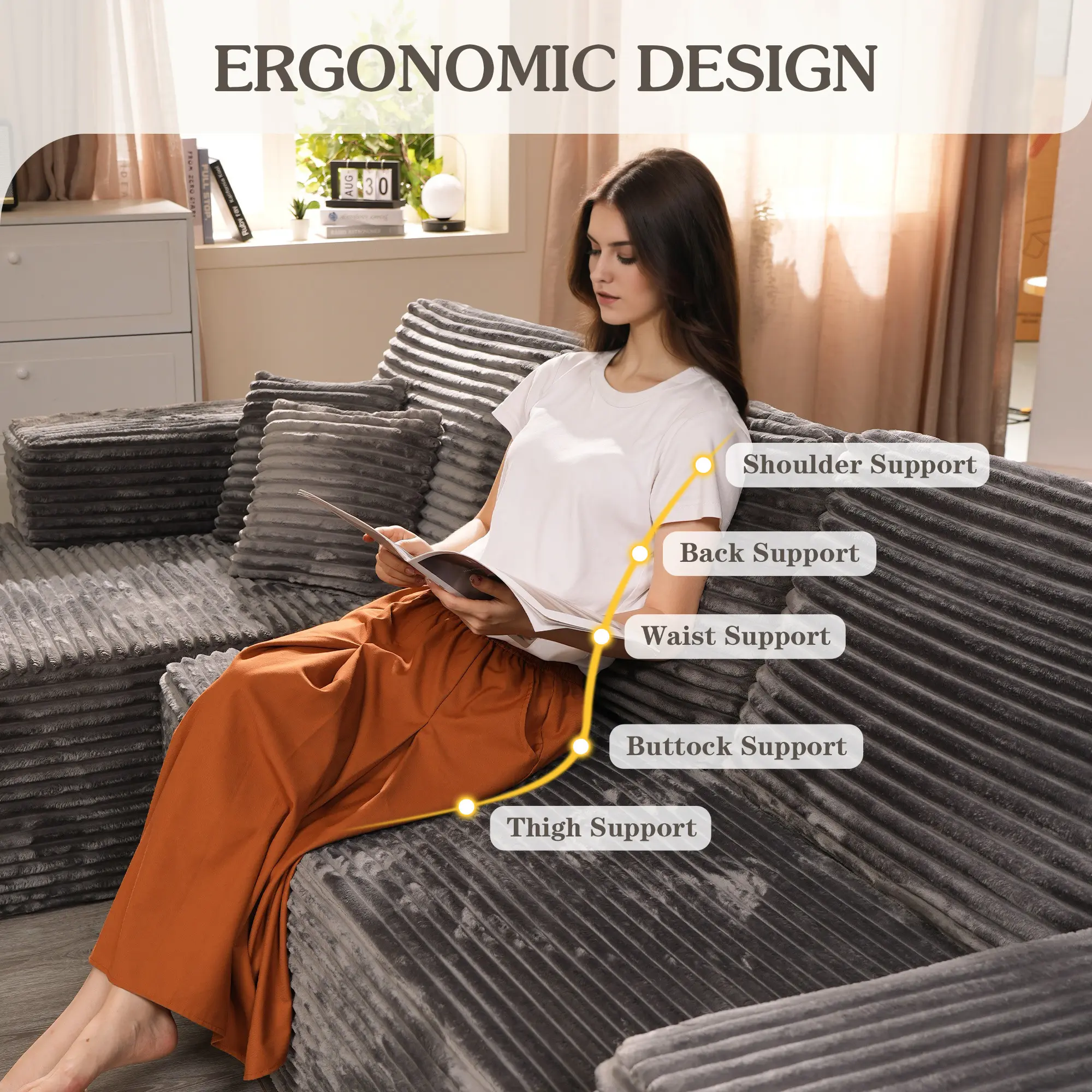 The grey Plush corduroy chaise and sofa is beautiful. It was so easy to set up. Comfortable.