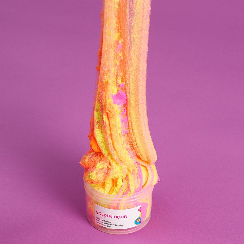 This Sloomoo - Golden Hour Slime Moldable Taba Squishy Neon is perfect for beginners, it offers a cloud-like texture and a delightful pina colada scent. The 8oz size makes it a fun and engaging slime experience. 🍹