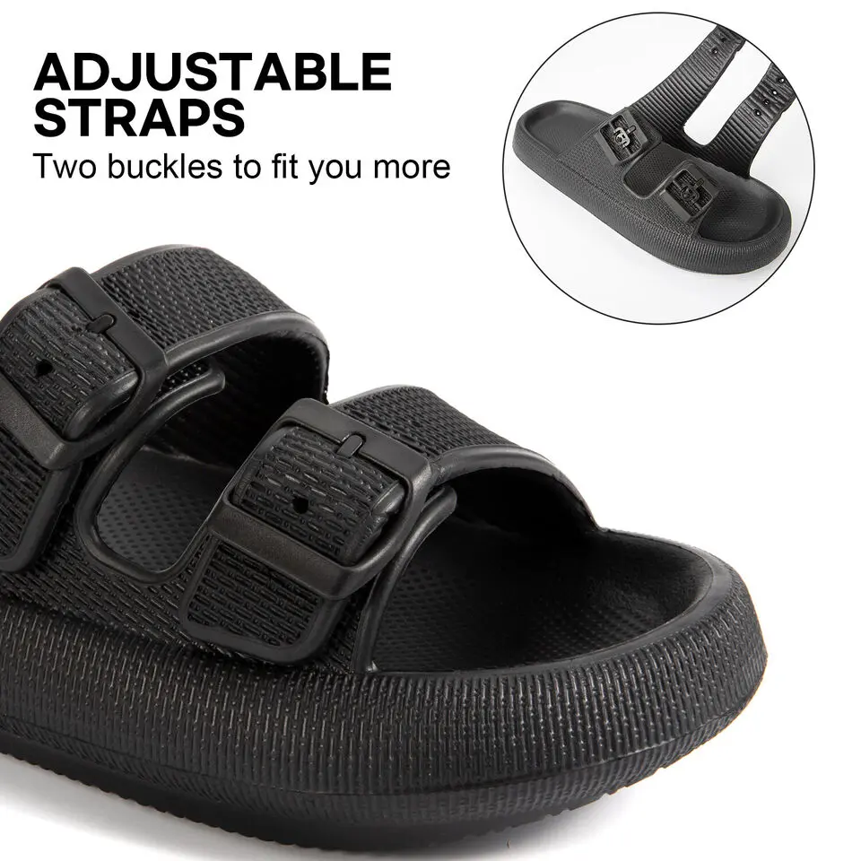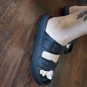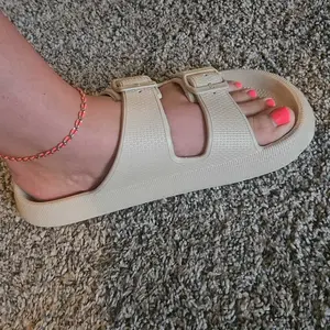 Theses sandals are so comfortable. They feel like your walking on clouds. Only thing I didn't like was the piece under the buckle the top one towards my toes pokes me. Kinda of annoying but hopefully the more I wear the better it will be. Now i got black if you have dogs it will be a hair magnet.