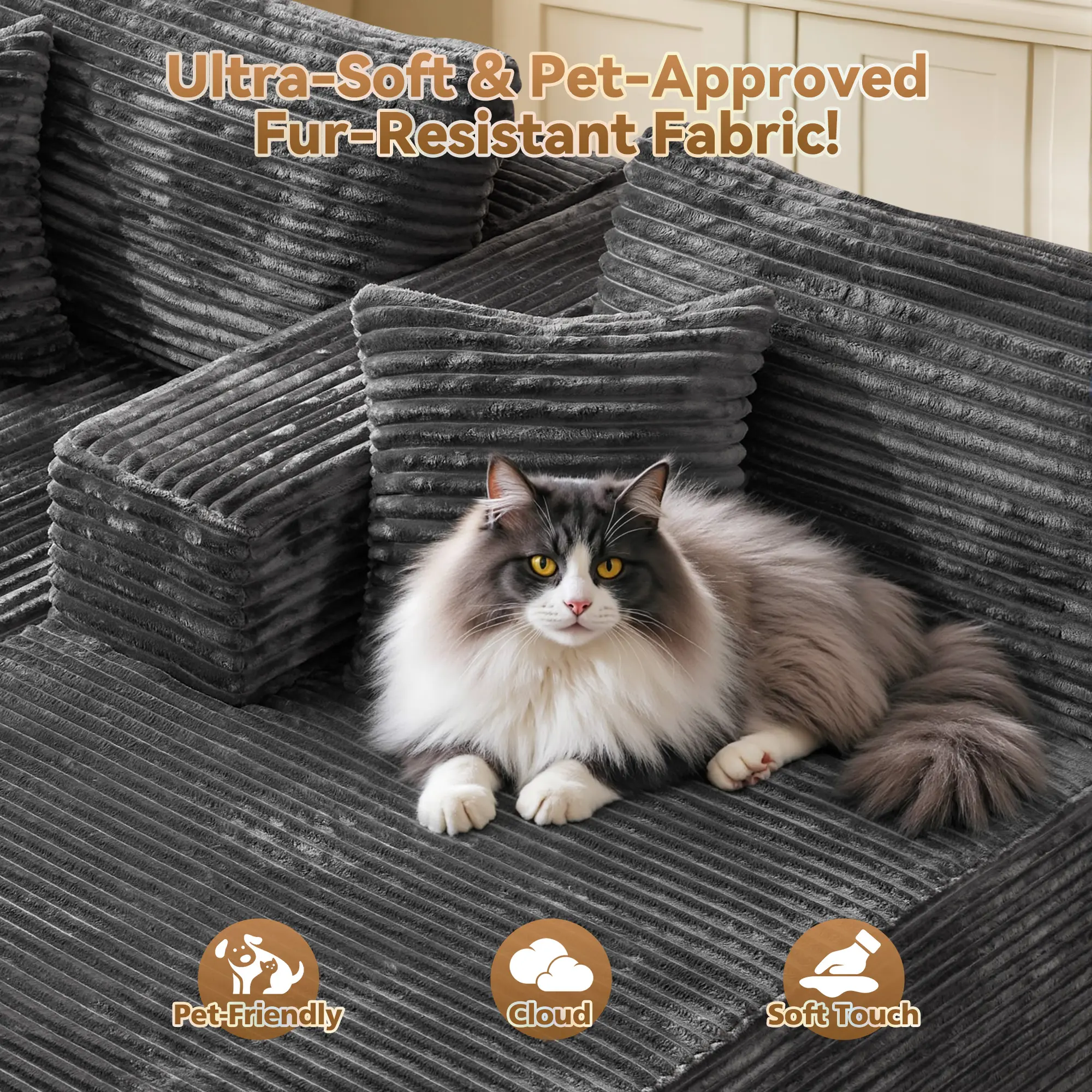 Beige Right-Chaise Sofa with Ottoman