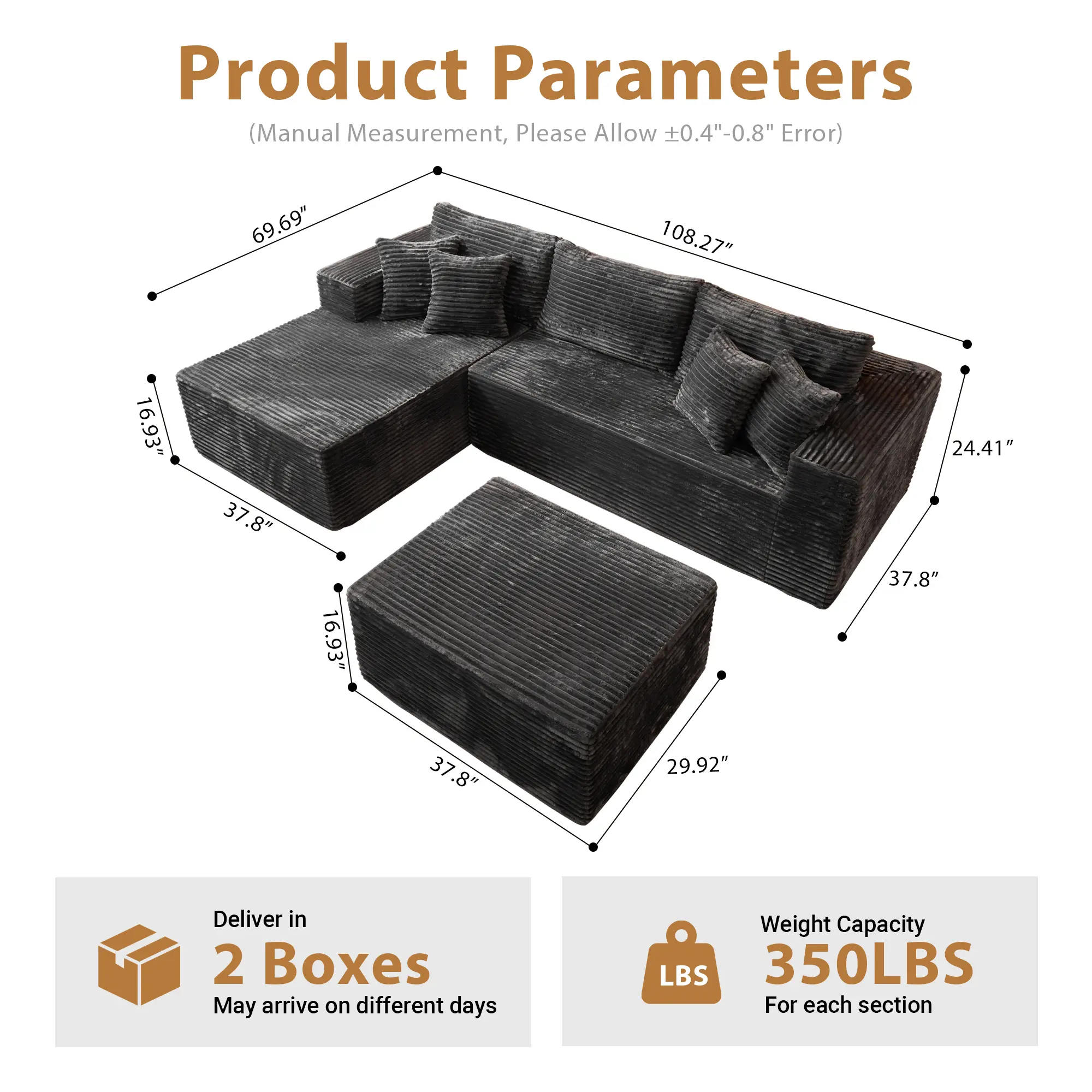 Grey Left-Chaise Sofa with Ottoman