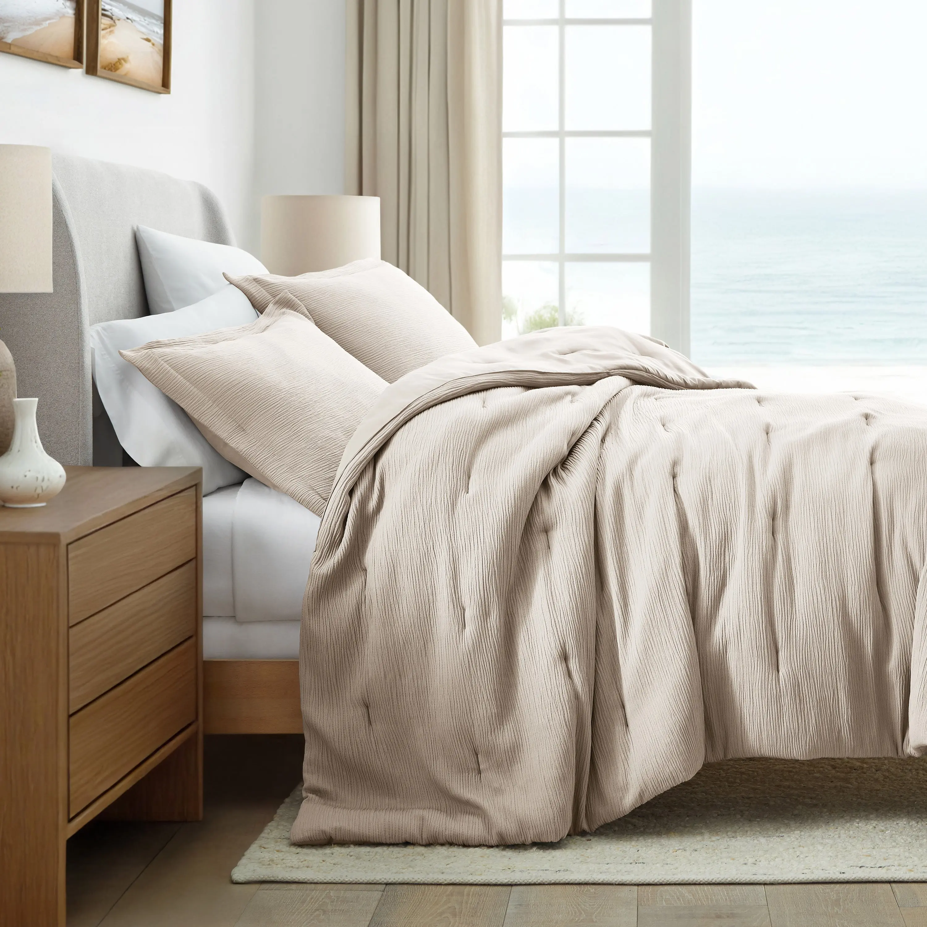 This comforter is lightweight but also fluffy and soft to dress a bed up perfectly. And the color is everything I was looking for.