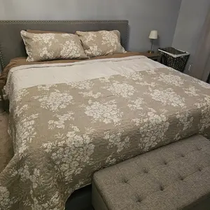 Love our comforter!! Looks high end, but so affordable. I bought a king size for our queen bed because I didn’t want to use a bed skirt and it works great. I’ve received tons of compliments.