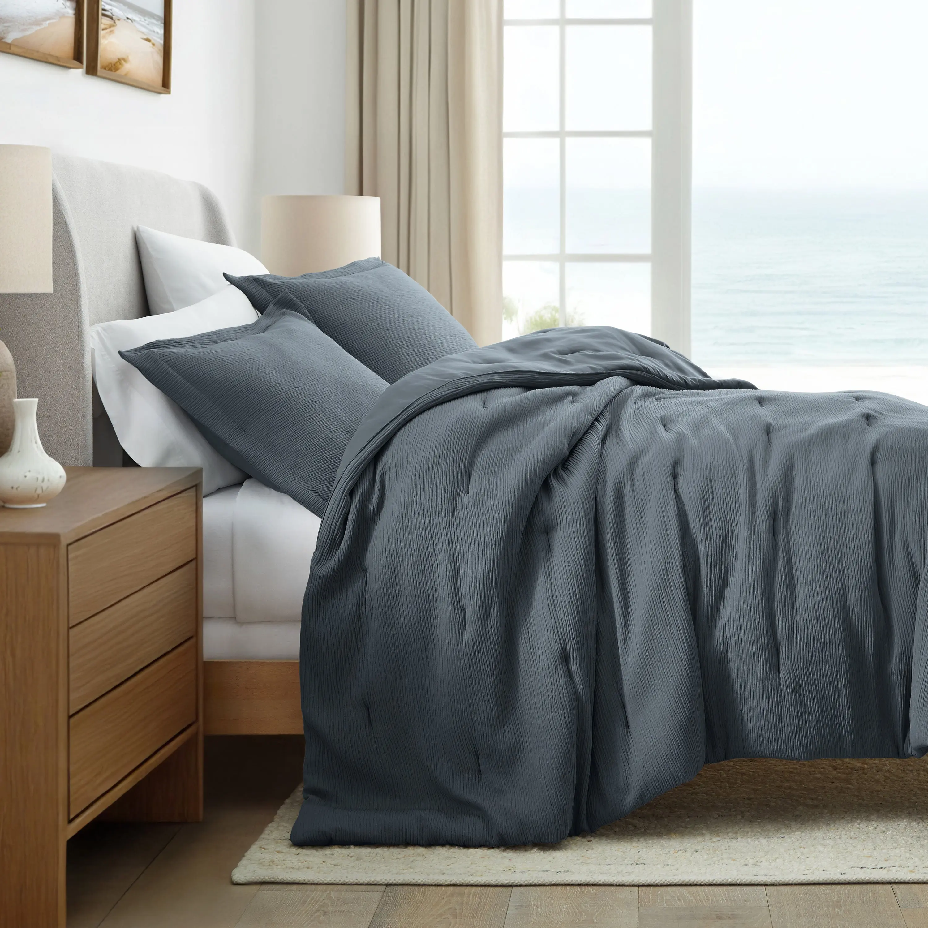 I wanted something simple that added a coziness to our bedroom and this set is it! I love the Slate Blue color. The texture is very soft and it's not overly heavy.