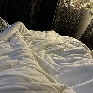 Great Comforter, personally I really like the texture on the inner side that is just smoooooth like a cloud is hugging you. This color suits my taste very well, I think a cooler shade of white would almost make it too sterile and off putting, so this color really makes it feel clean and welcoming