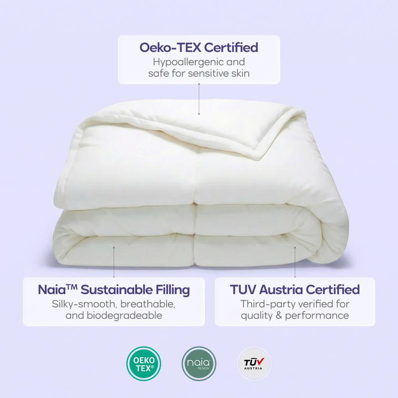 Love the feel of this comforter. So soft. It keeps me cool when it’s too hot and warm when I need it. I bought another one because I loved it so much.