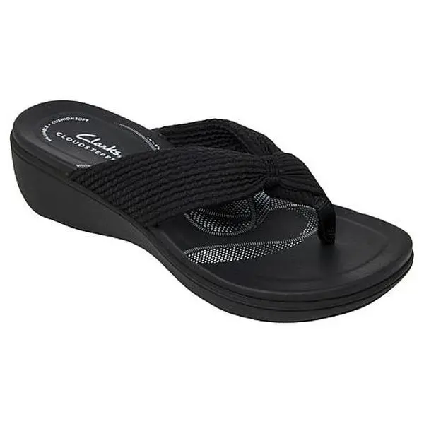 CLOUDSTEPPERS™ by Clarks Breeze Rae Erin Wedge Sandals Step out in comfort this season in these versatile, slip-on thong sandals from Clarks. A cushioned wedge silhouette and textured strap make this pair a great choice for dependable comfort and style all season long. Available in Narrow, Medium or Wide sizes.