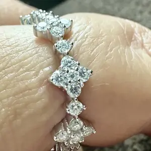 Very pretty. I think I'd like it better with 3 clover and a regular band than the all around eternity through. Fits well and looks good on!