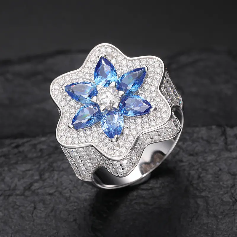5. 【#R306 】925 Sterling Silver Lucky Clover Cross Ring With Pink Blue Water Drop Stone Iced Out Couple Rings for Women Men Hip Hop Gifts