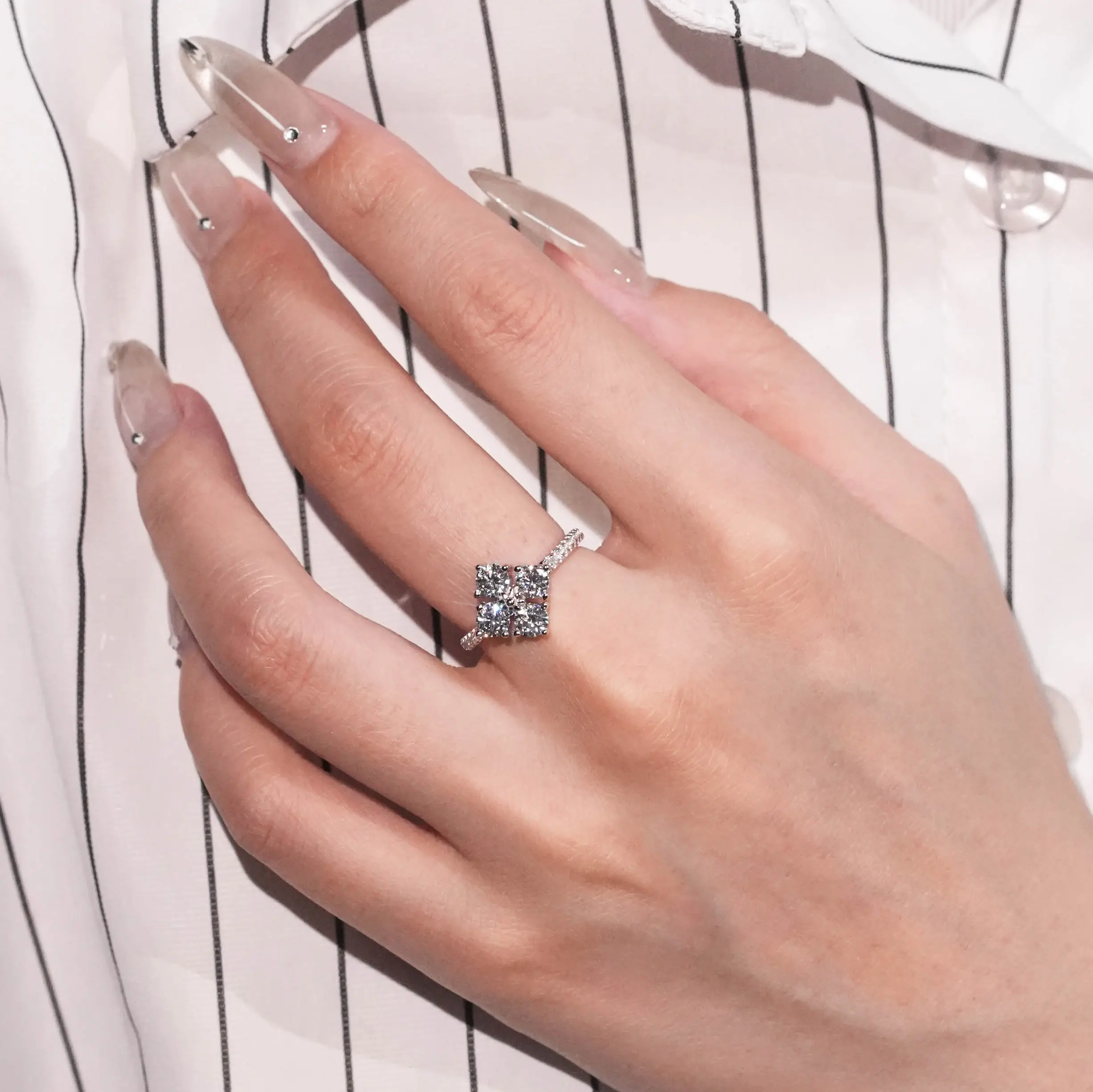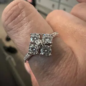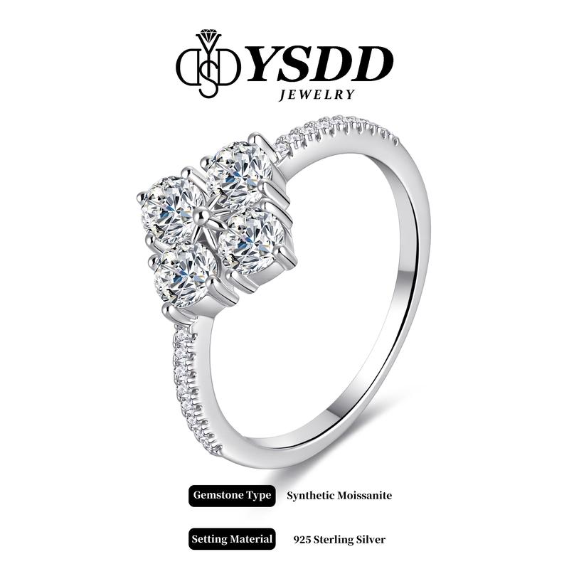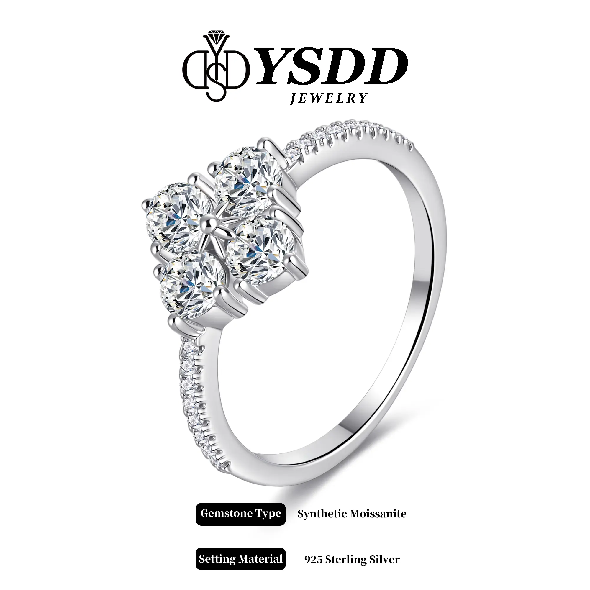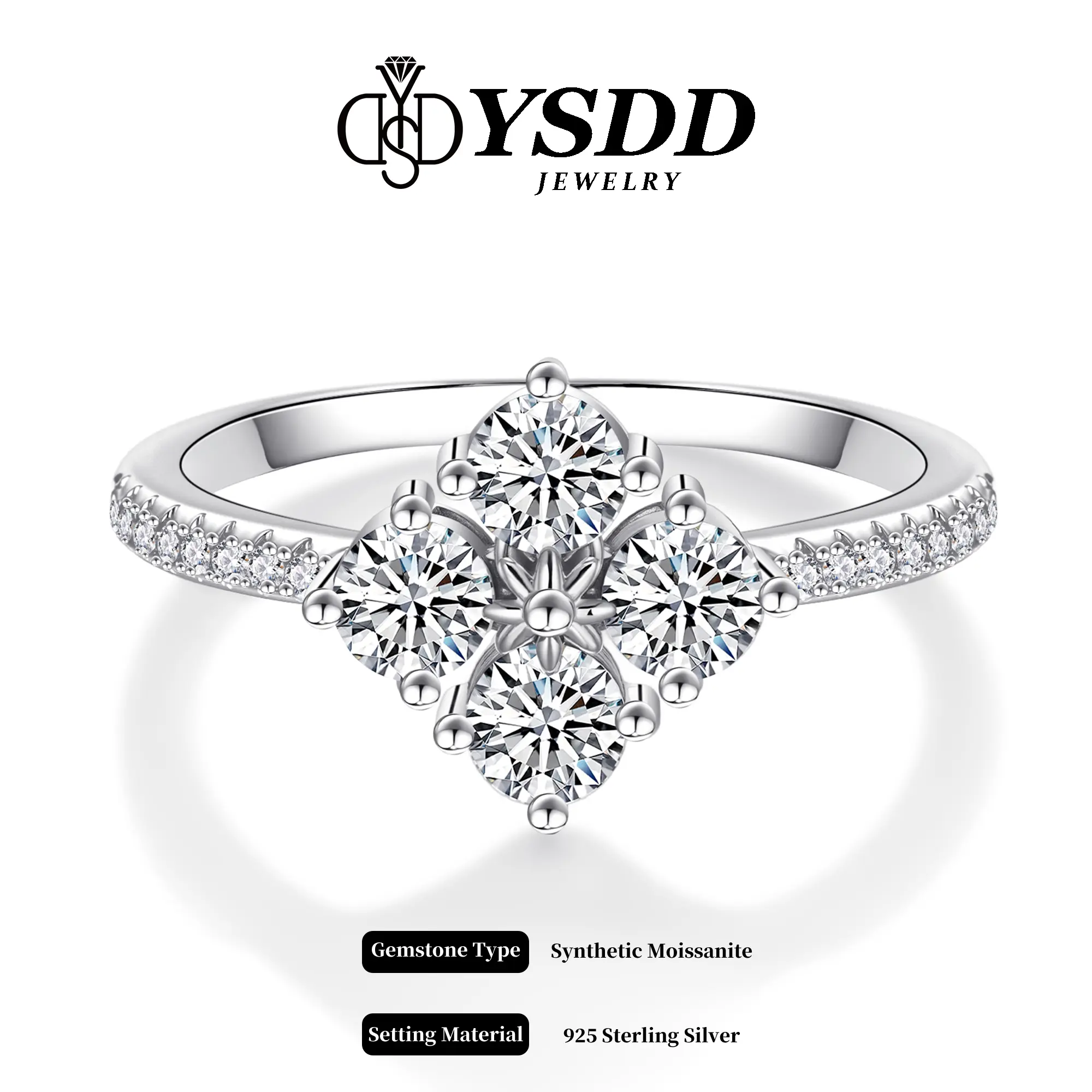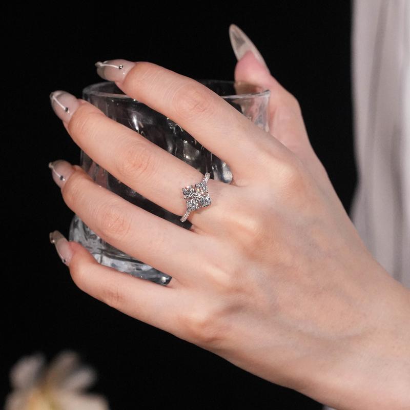 ·Dainty vintage clover ring, the colver is shaped by 4 pieces synthetic moissanite stones with a clarity of VVS1-2 and a grade of D/E. 0.3carat each, 1.2 carat total.