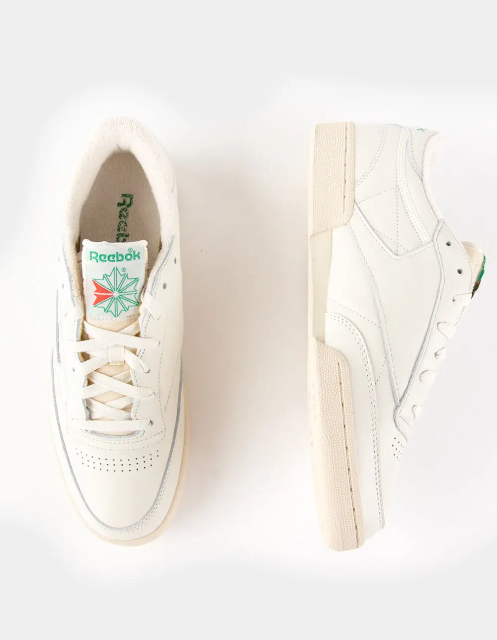 Reebok Club C 85 Vintage Shoes. Taking their cue from the '80s court classic, these shoes are all about simplicity. They have a leather upper and a timeless easy-to-wear style. The EVA midsole gives you lightweight cushioning. Leather upper. Removable EVA foam sockliner accommodates orthotics. Die-cut EVA midsole for lightweight cushioning. Durable rubber outsole. Imported.