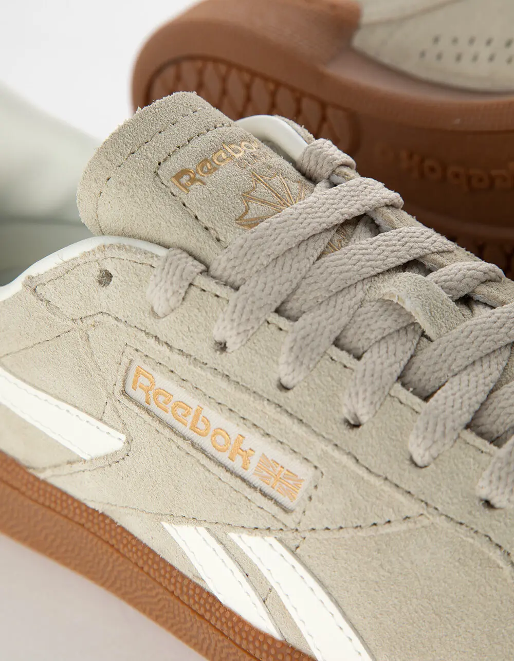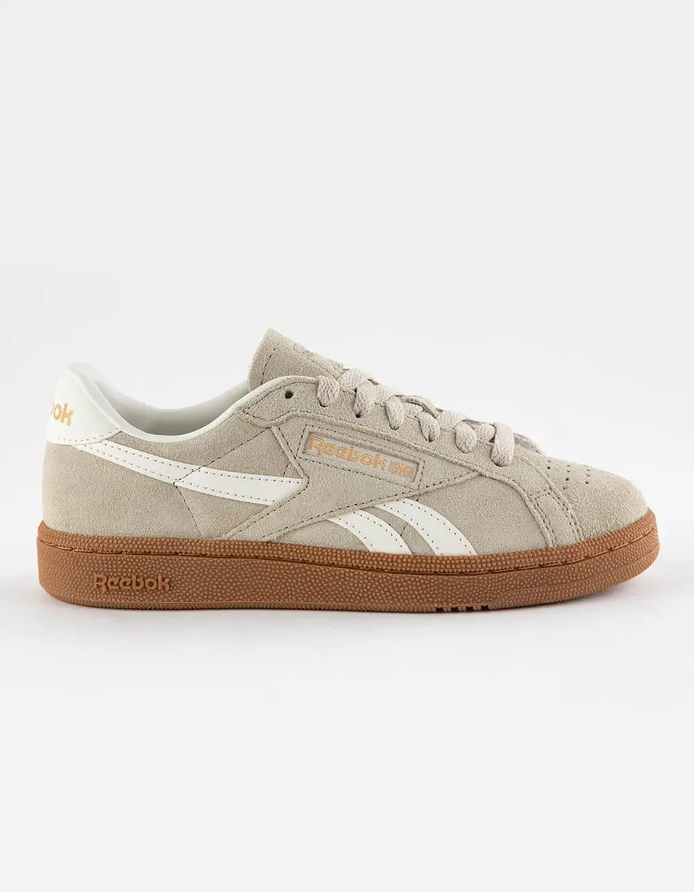 Reebok Club C Grounds UK Shoes. Feel like you're lacing up a pair of old-school Club C sneakers straight from the '80s. These shoes have all the vintage touches you want, from perforations to a debossed heel tab and side stripes. The soft, suede upper flips the Reebok script with the smooth side stripes and heel tab. Suede upper with synthetic leather hits. Lace closure. Textile lining. Rubber midsole and outsole. Imported.