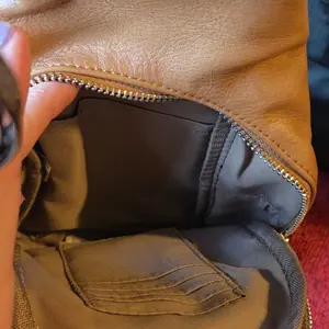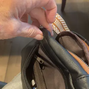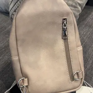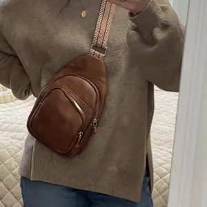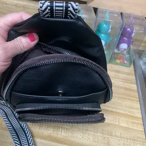 This sling bag includes 1 main zip pocket, 1 front zip pocket, 1 anti-theft back zip pocket, 1 inner pocket, and 5 card slots.
