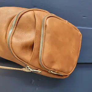 Made from vegan PU leather, this crossbody bag is comfortable, lightweight, and water-resistant.