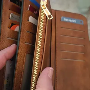 This wallet includes 4 cash pockets, 1 interior zipper pocket, 2 photo slots, and 14 card slots—providing plenty of space for cash, cards, coins, and small essentials.