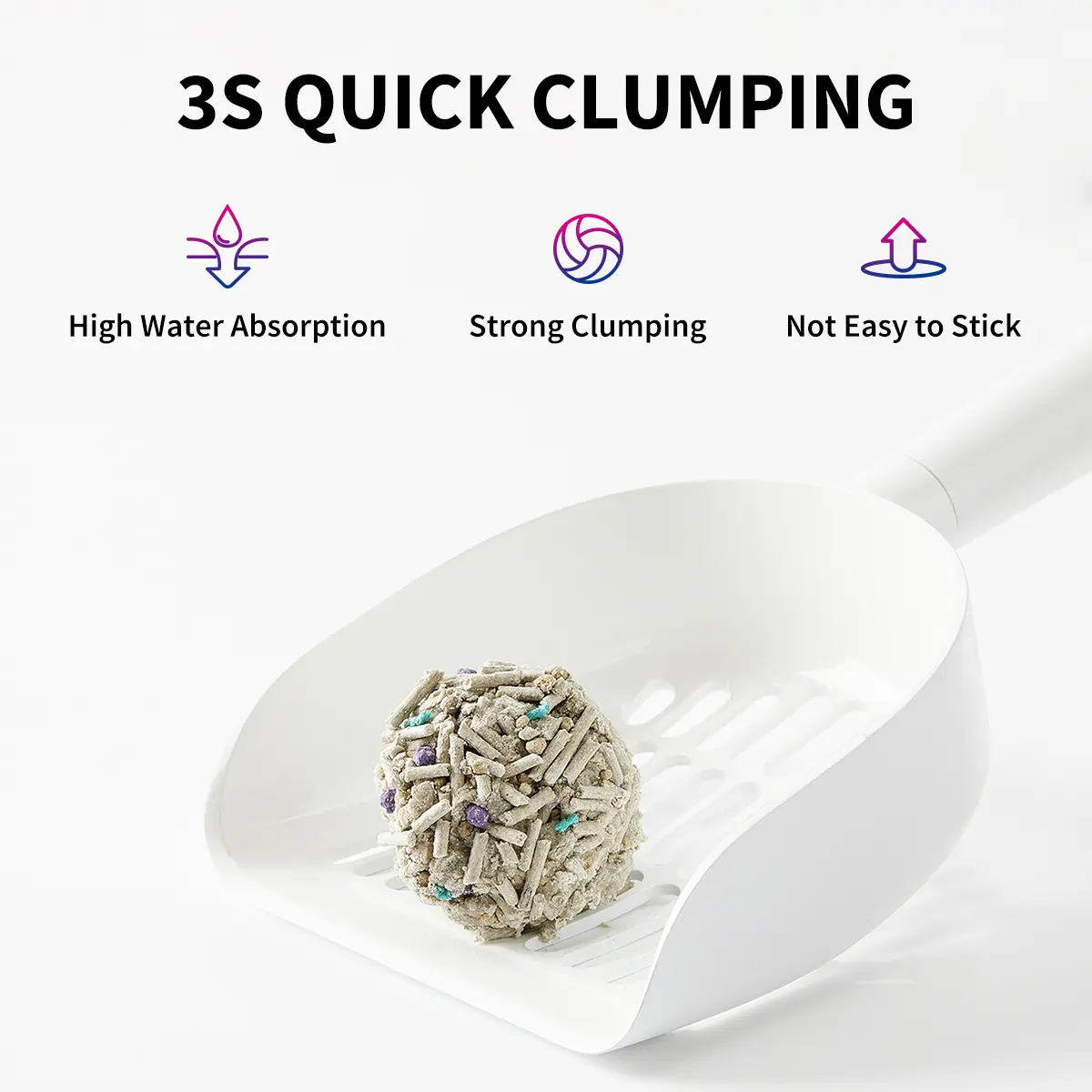 Rapid Clumping: Small-particle bentonite not only fills up the gap of tofu cat litter but also increases the connection area, enhances water absorption of cat litter, contributing to quick and tight clumping. You don't need to scoop a sticky litter box.