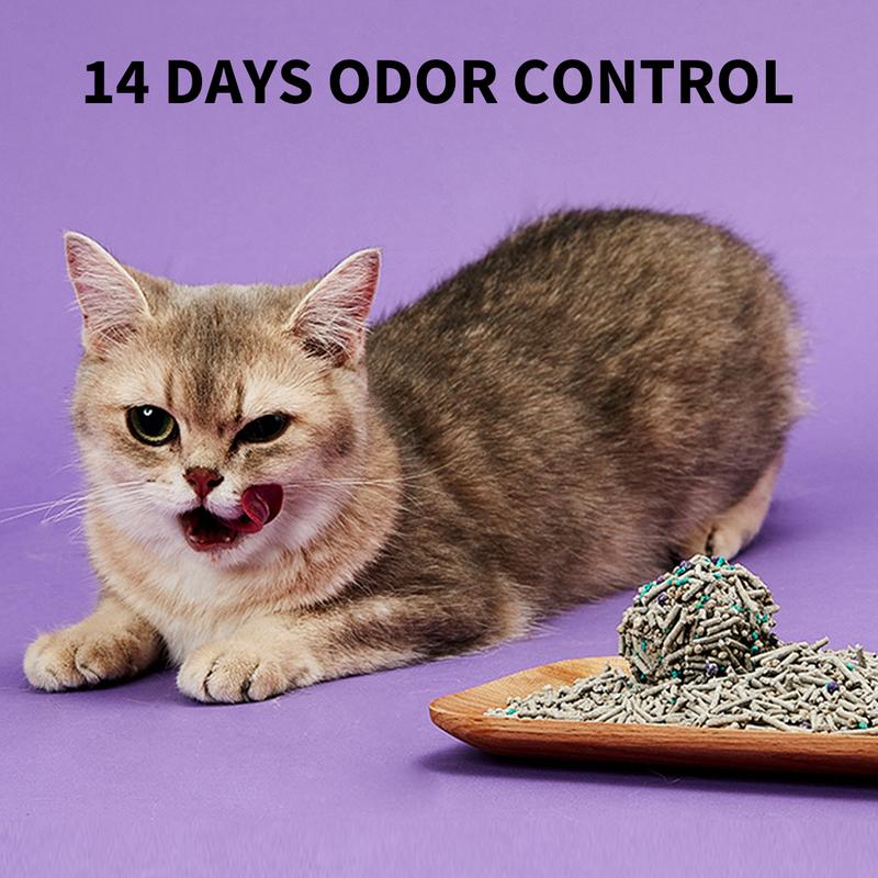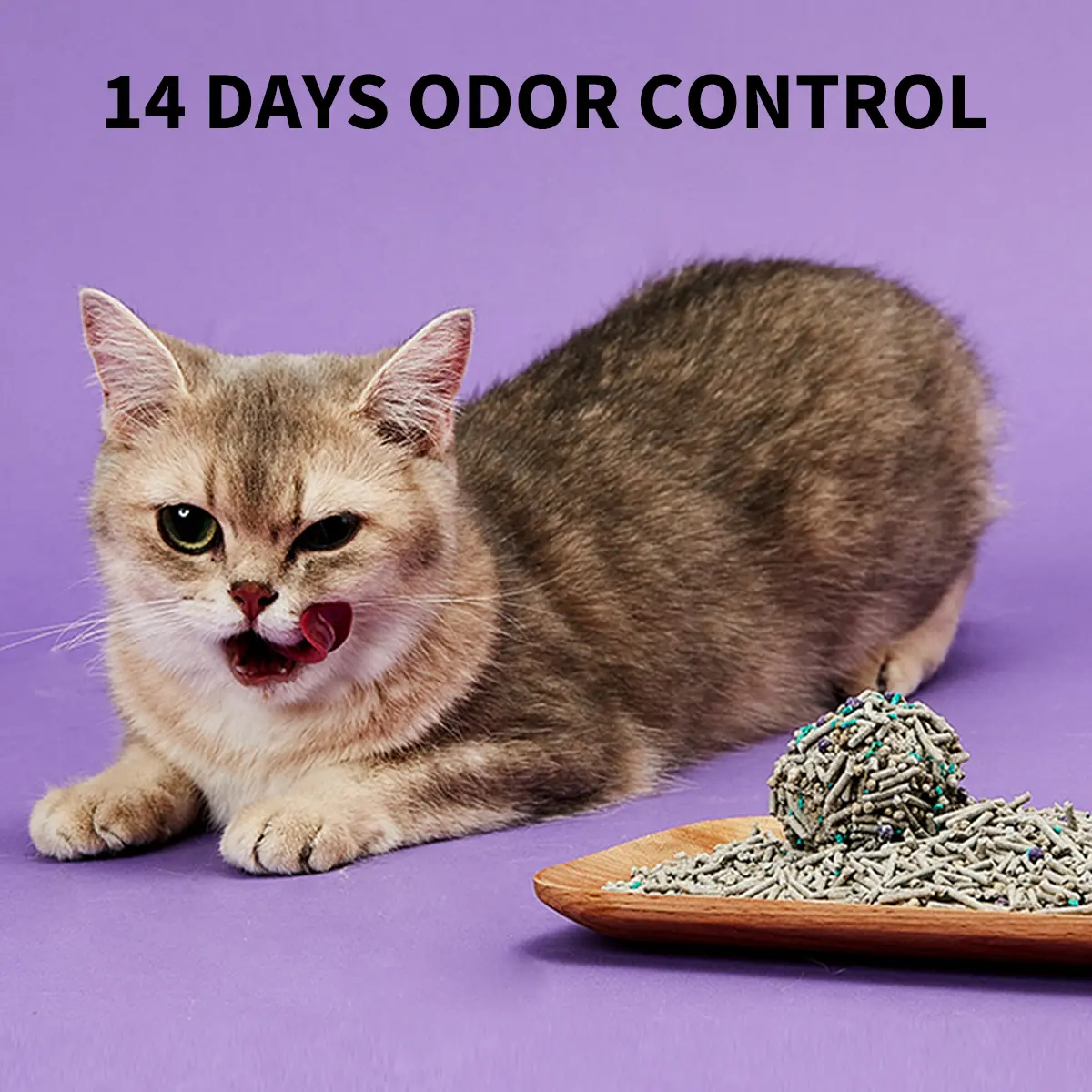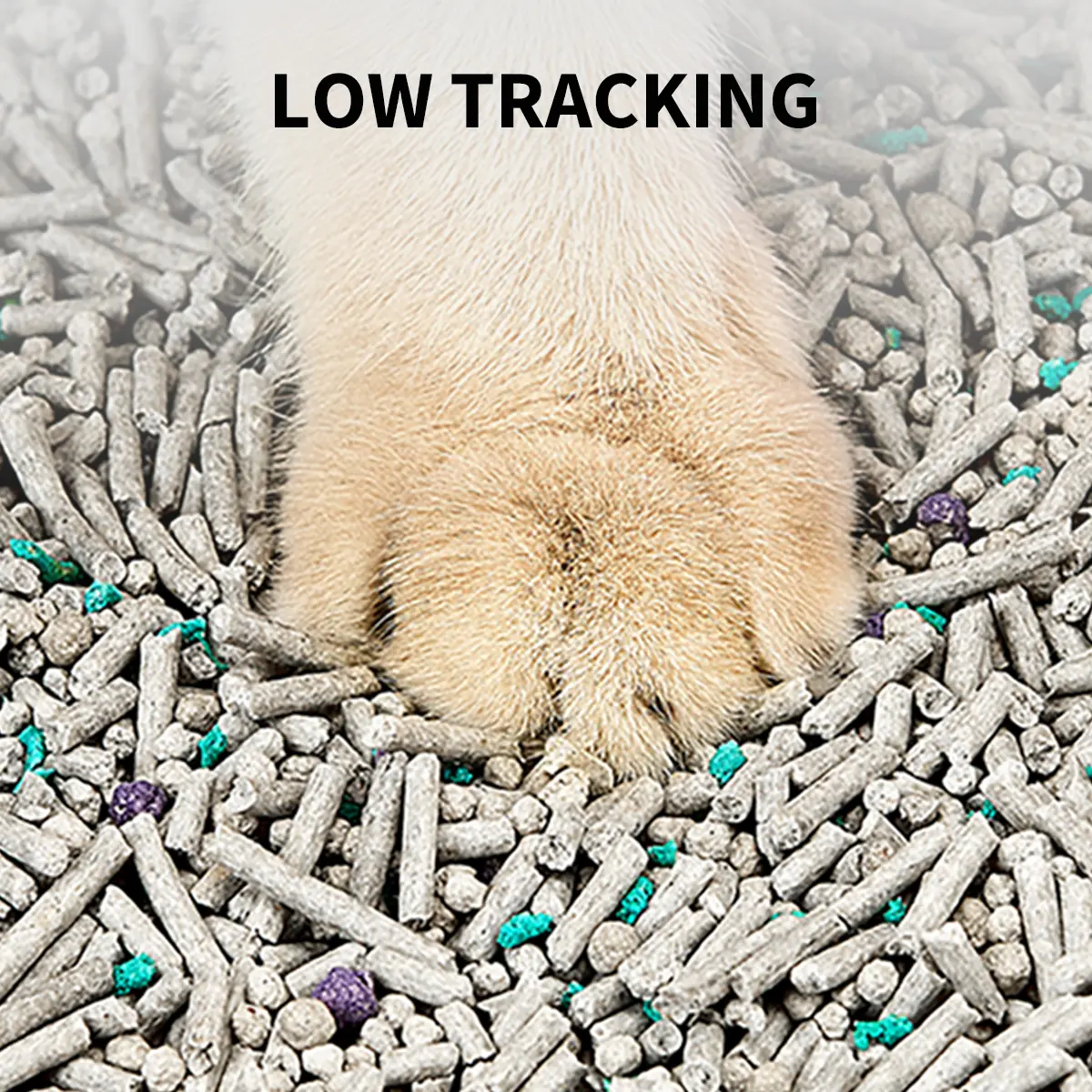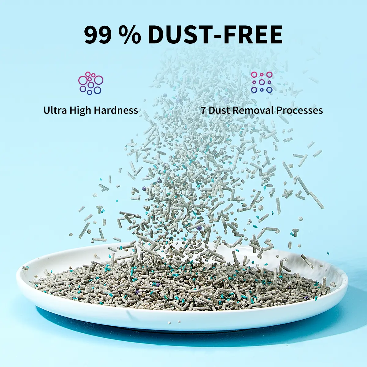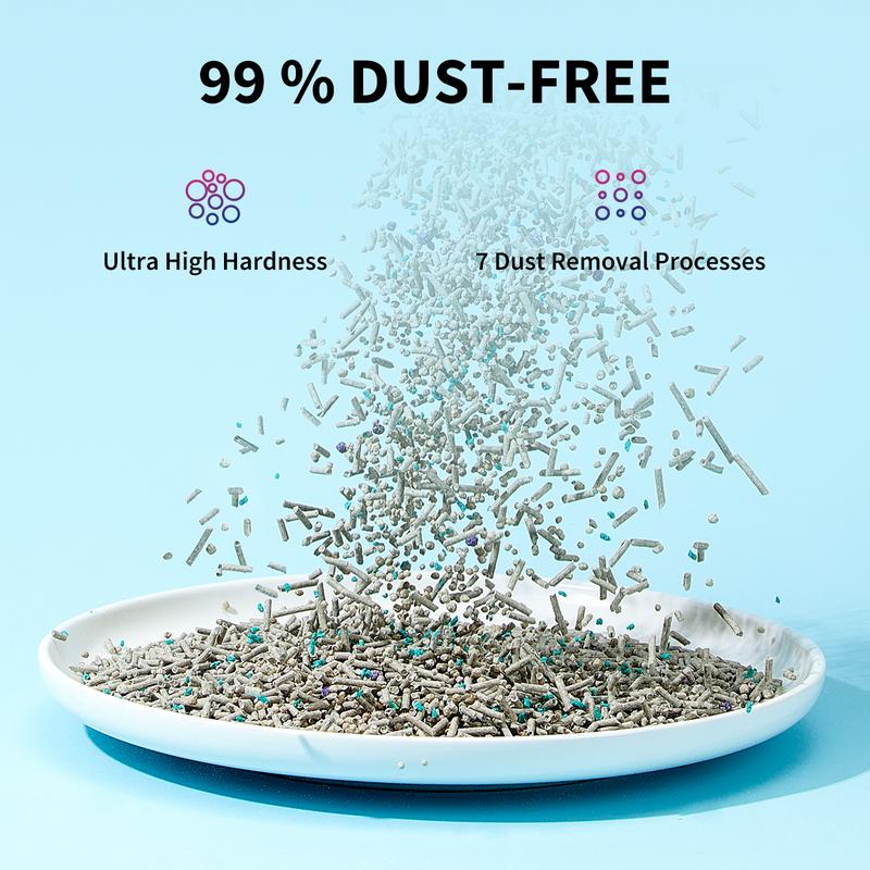 Dust-Free and Odor Control: Activated carbon and deodorant particles prevent unpleasant smells. 2mm diameter of each cat litter, high hardness and non-fragility cat litter decrease dust in the air to protect your cat's respiratory system.
