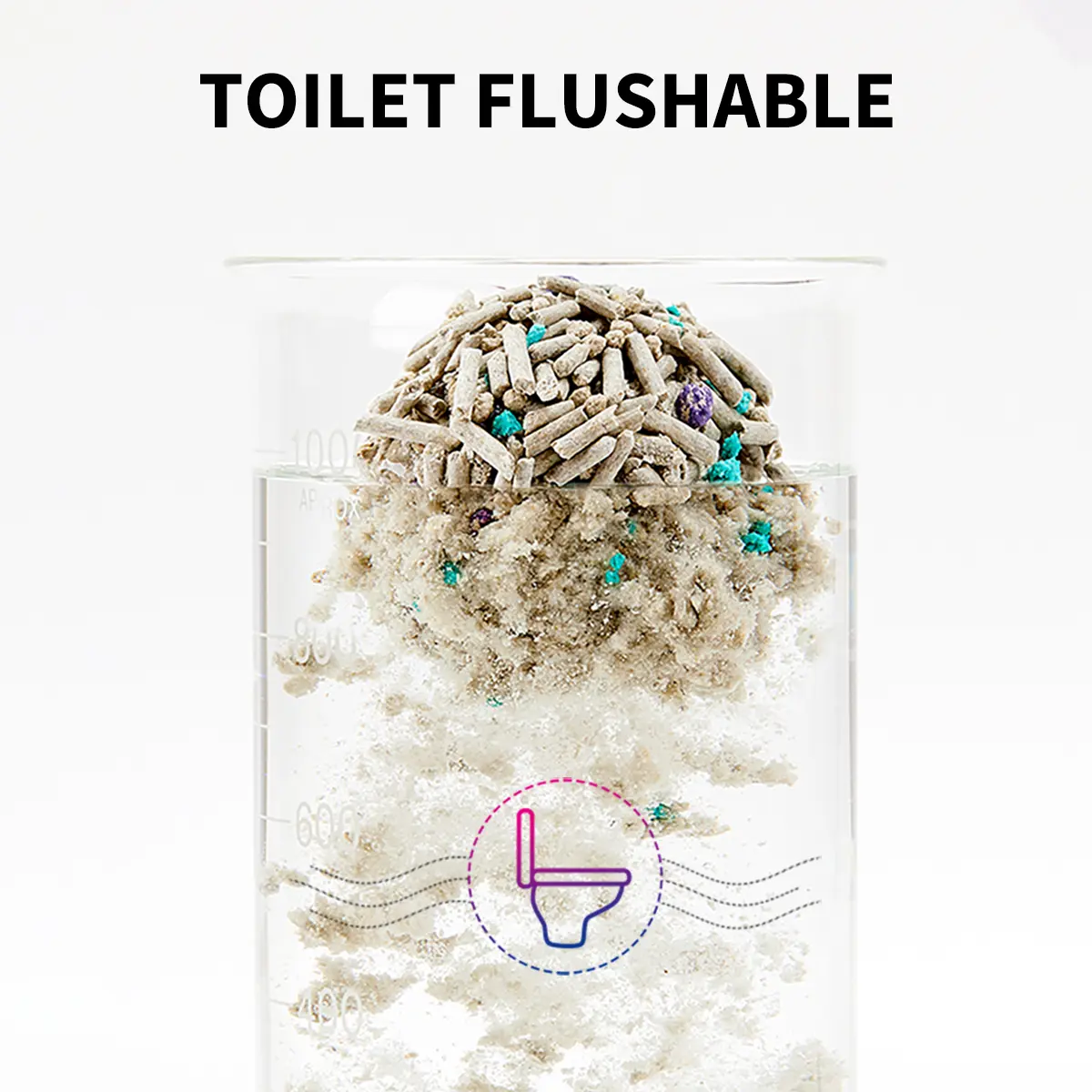 Water Flushable: Made of natural ingredients, water dissolvable and flushable, you can directly pour the used cat litter into the toilet(Note: Please don't pour too much at one time).