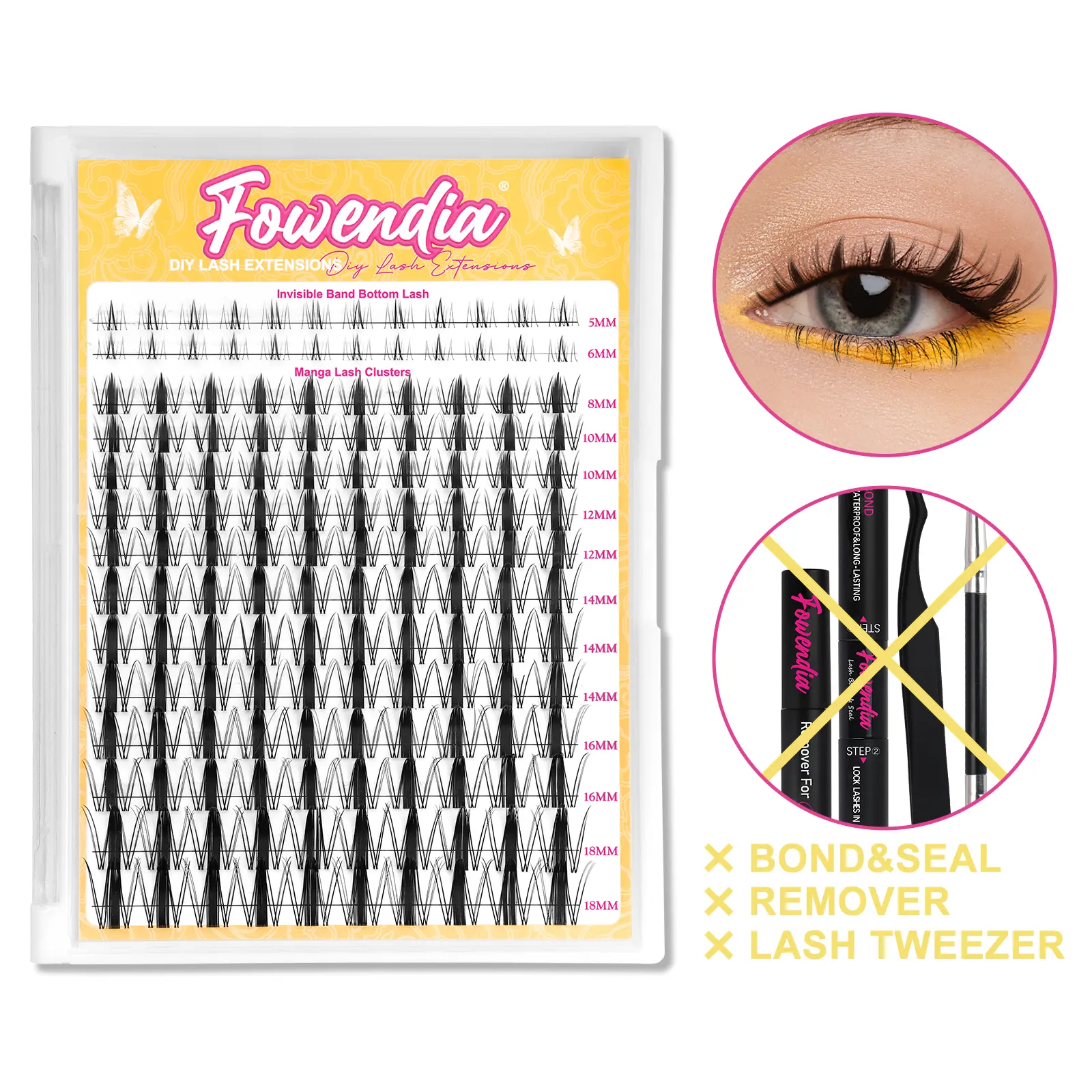 GREAT bond… the bond is white and the seal is AMAZING!! Lasted two weeks with no issues whatsoever! Lashes are super great quality, soft, and not uncomfortable at all Came with everything I needed! And the bottom lashes are SUPER CUTE!