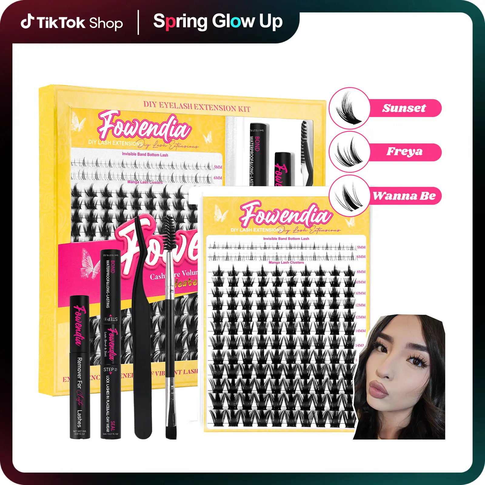i got the california sunset ones that come with the supplies in order to apply the lashes. this comes with lots of good quality stuff that have lasted me about a week. one thing i don’t like is how the glue gets really clumpy on the wand inside the container but i’m a newbie so idk if that’s normal…