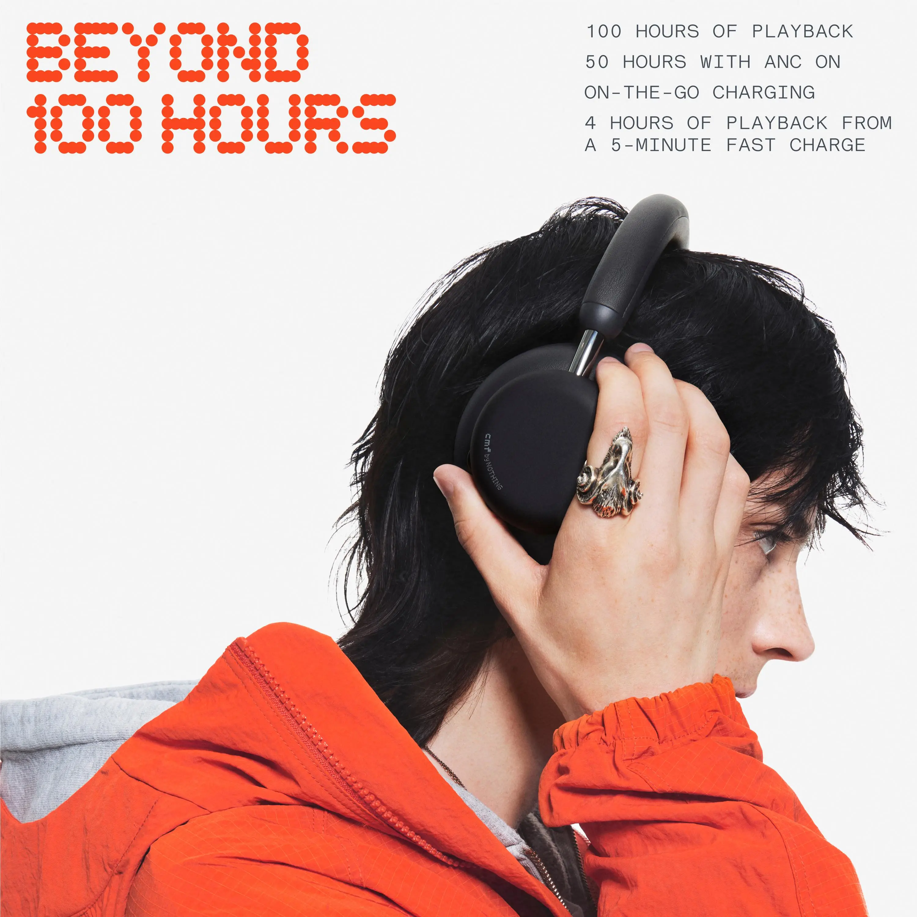 Up to 100 hours playback (ANC off) / 50 hours with ANC on. Plus 5 mins charge = 5 hours playtime. Stay connected longer. ⏰