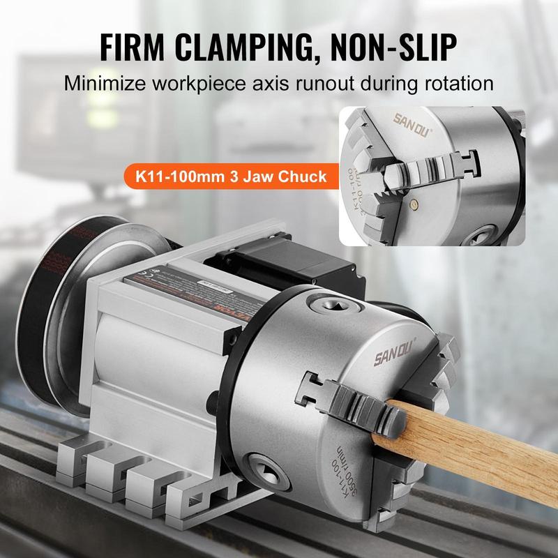 • 3-Jaw Chuck Mastery: Our K11-100MM 3-jaw chuck uniformly secures various types of workpieces with formidable clamping force. It comes complete with 3 internal and 3 external jaws, accommodating a maximum clamping diameter of 0.08 to 1.18'' (2 to 30mm) for internal jaws and 1.18 to 3.15'' (30 to 80mm) for external jaws. Changing jaws is a breeze, ensuring that your workpiece maintains precise positioning and orientation throughout the machining process.