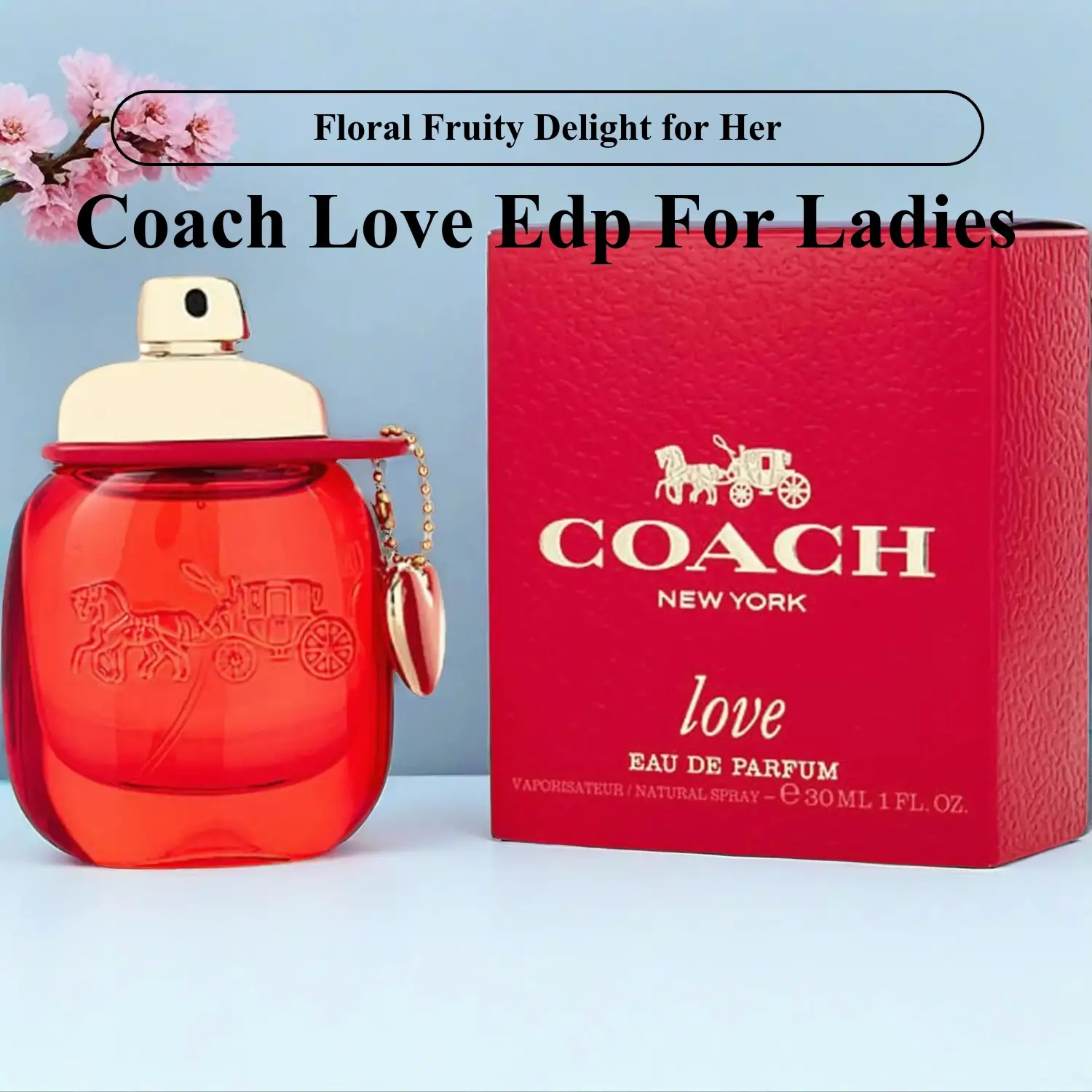Coach Love Eau de Parfum by Coach is a Floral Fruity fragrance for women. This new fragrance was launched in 2023. It features a top note of Wild Strawberry, a middle note of Red Rose, and a base note of Cedarwood. The perfume comes in a 30ml bottle, perfect for everyday use.