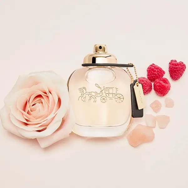Coach New York for women. Top Notes: Raspberry Leaf, Pink Pepper, and Pear · Middle Notes: Turkish Rose · Base Notes: Suede Musk and Sandalwood