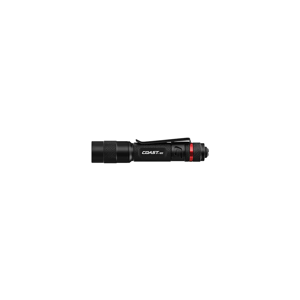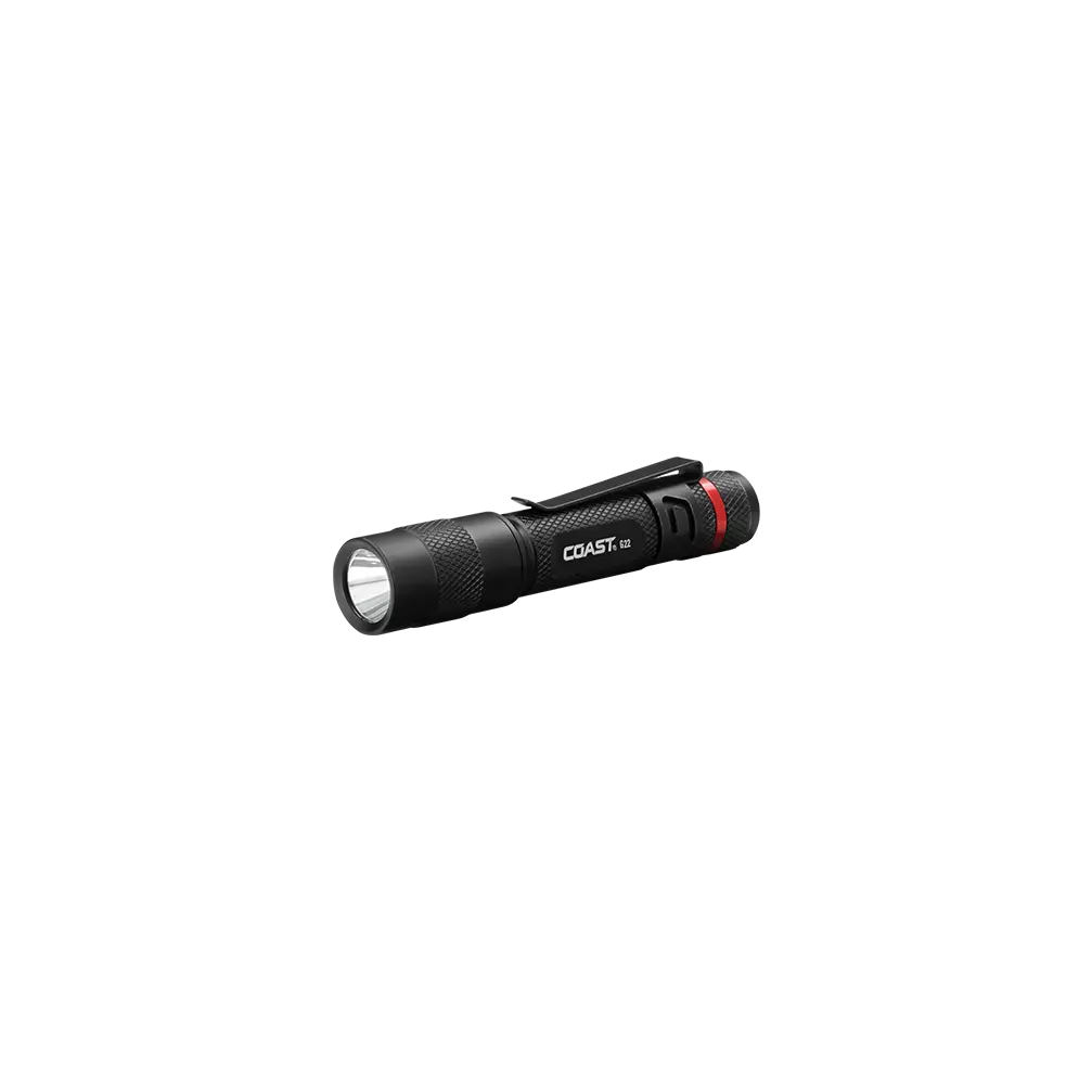 Carry close, see far. The G22 flashlight, unique among COAST pen lights, features a fixed BULLS-EYE™ Spot Beam and pocket clip to combine clip-and-carry convenience with longer-range viewing. Maxing out at 100 lumens, the two-mode beam from this sleek frame reaches 55 meters (180 feet) with a hotspot at the center and a surrounding halo of softer light to expand the viewing area. The G22 measures 4 inches long and less than one ounce—combining ultimate portability with ultra-durable construction. Made from top-grade aluminum, this go-everywhere pen light is IP54 storm proof and dust resistant, ready to shine in any weather.
