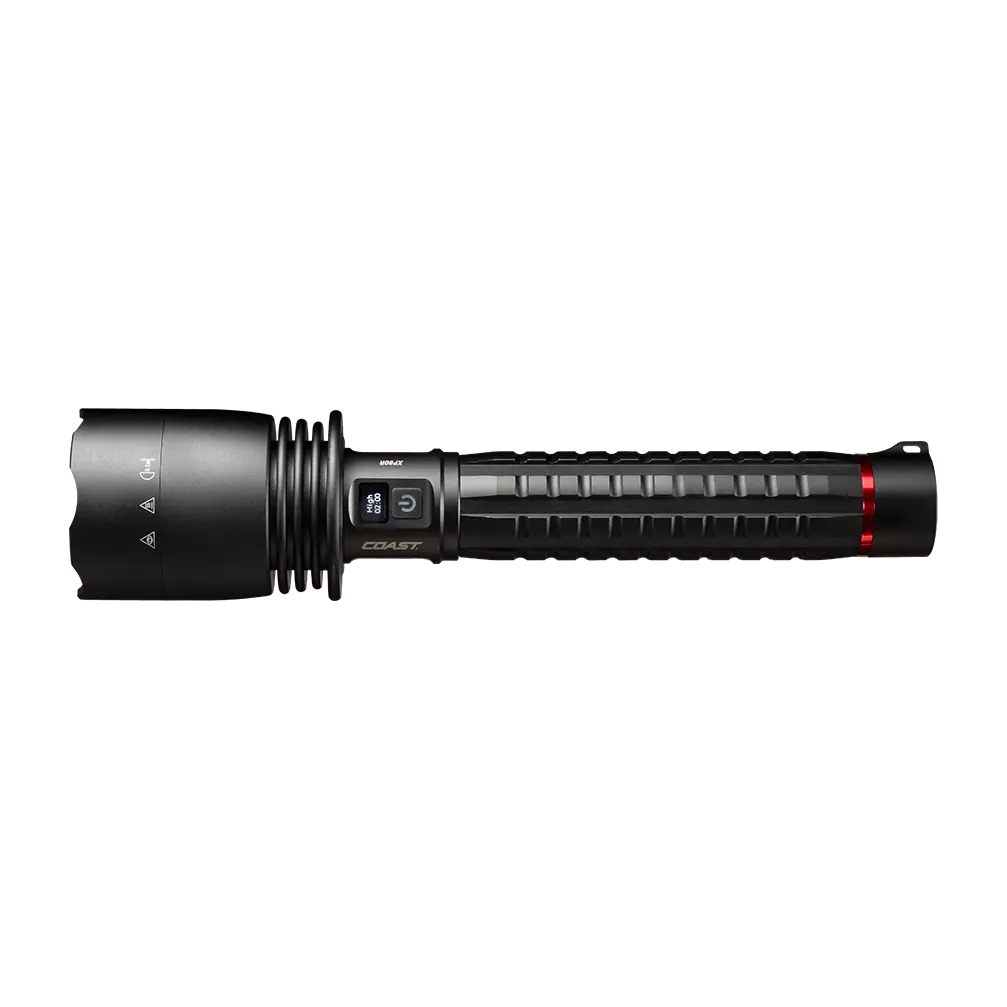 Take light to an all-new level. Built for maximal output, the XP80R rechargeable flashlight is top-quality, portable lighting on absolute overdrive—peaking at 15,000 lumens. This five-mode flashlight—medium, high, low, Turbo, MoonGlow™—features a Focusing Pure Beam adjusted at the easy push or pull of the SLIDE FOCUS®. During use, the POWERiQ™ real-time display in front of the power switch shows in which mode the flashlight is operating and how much run time remains in the battery. To manage its staggering power, the XP80R has built-in overheat protection that automatically decreases output if the circuitry reaches a threshold temperature. Featuring a Pro-Tek charging port at the front of handle, this Rechargeable Plus flashlight recharges while its ZITHION-X™ ZX880 battery (included) remains inside. Plug straight into the USB-C port and monitor power status with the charge indicator. A separate USB-C port on the handle provides power-out so that, if needed, you can recharge other devices using the flashlight as a power bank. The flashlight can also run on nine AA alkaline batteries (purchased separately). Engage the power lock-out when the flashlight isn’t being used to prevent accidental battery drainage. Constructed of top-grade materials and fit for the toughest work, the XP80R is rated IP54 dust-resistant and water-resistant and backed by the COAST lifetime warranty.