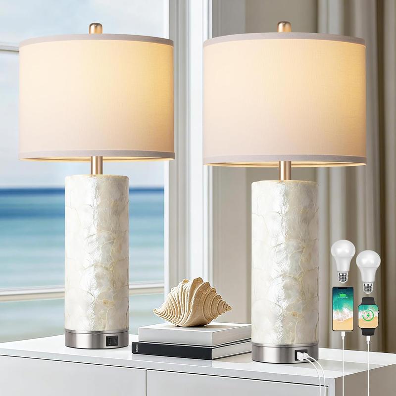 1、Shell-Inspired Design: These coastal table lamps feature a stunning shell design, adding a touch of elegance and natural charm to living room, bedroom, or home office setting, suitable for those seeking coastal-themed decor