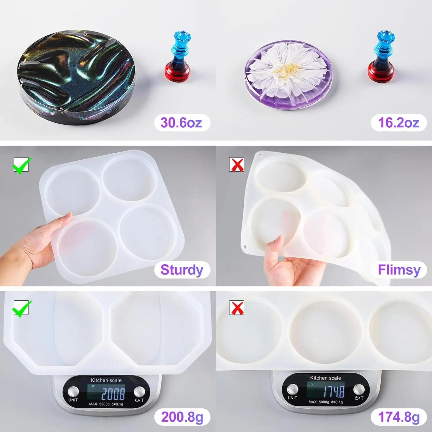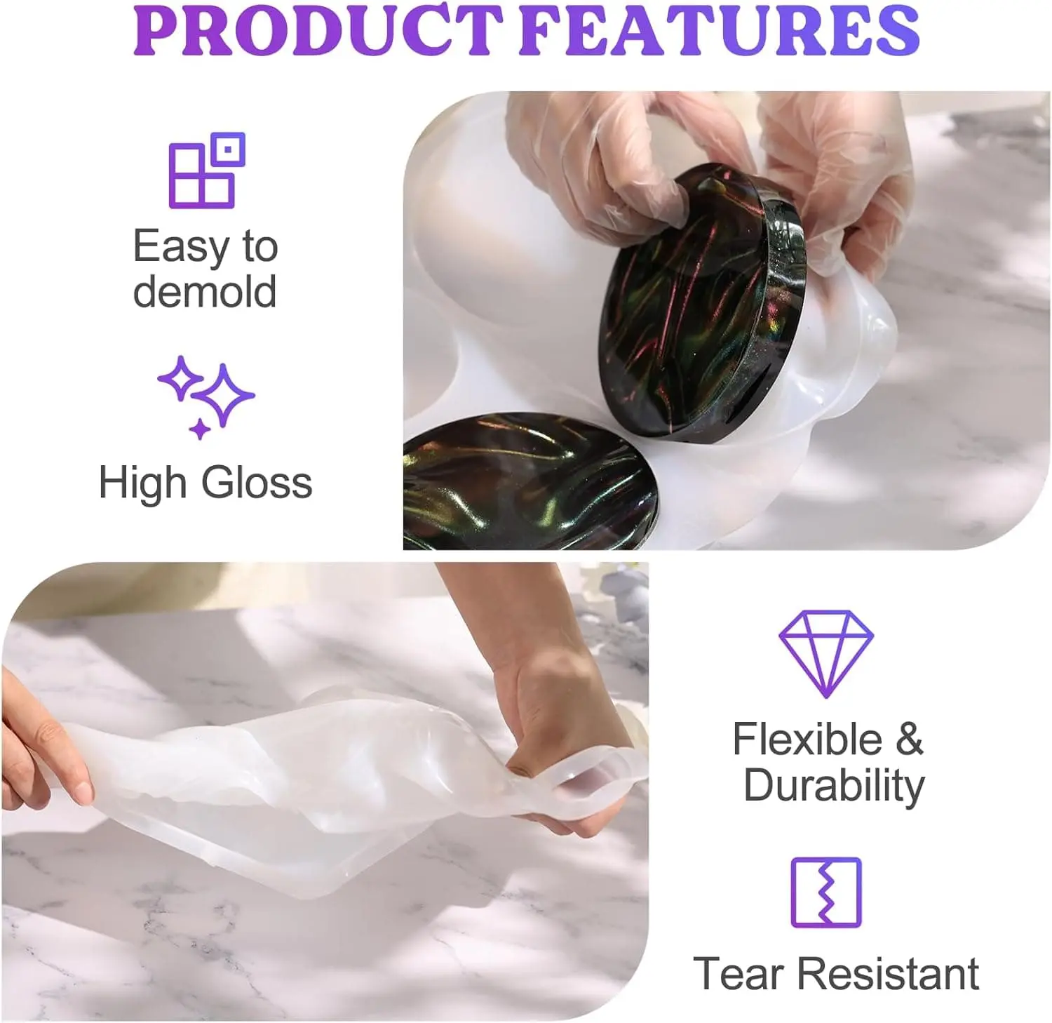 ·Excellent Product Quality: Our epoxy resin molds are crafted from premium silicone which is flexible & not easily deformed, washable & easy to clean, easy to use & de-mold, reusable & durable. They have glossy interiors which ensure the finished products have a glossy and smooth surface without polishing. Easily help you make shiny resin art.