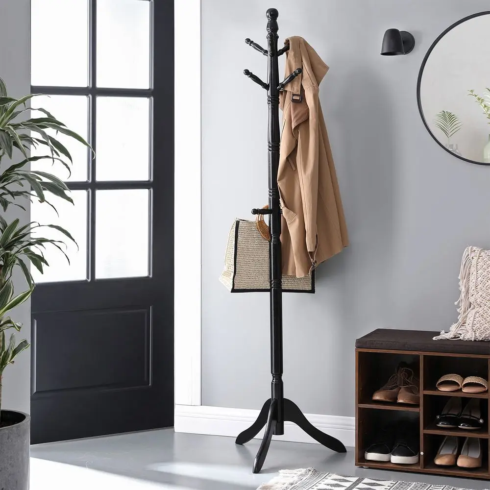 Black, 8 Hooks, Solid Wood
