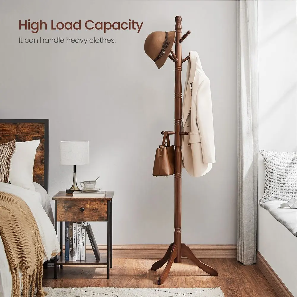 SONGMICS HOME VASAGLE Solid Wood Coat Rack and Stand, Free Standing Hall Coat Tree with 10 Hooks for Hats, Bags, Purses, for Entryway, Hallway, Rubberwood