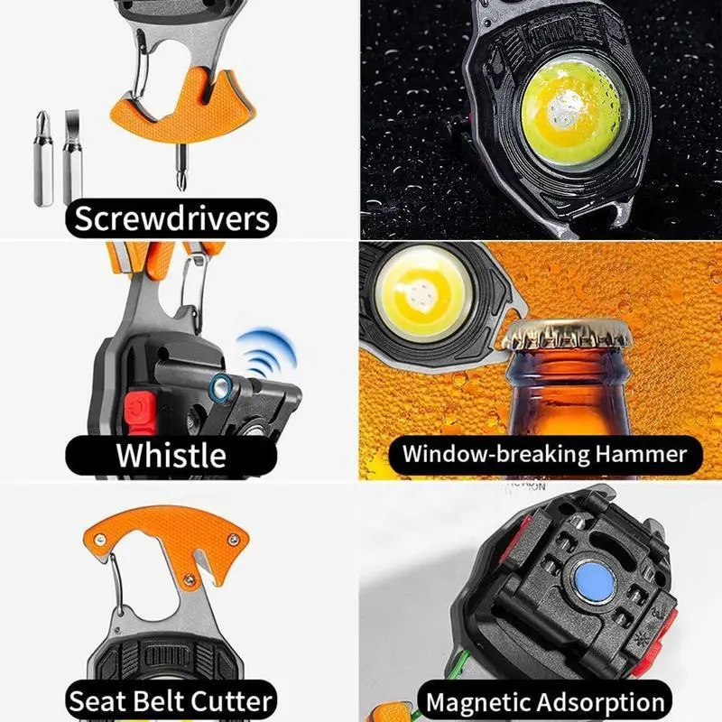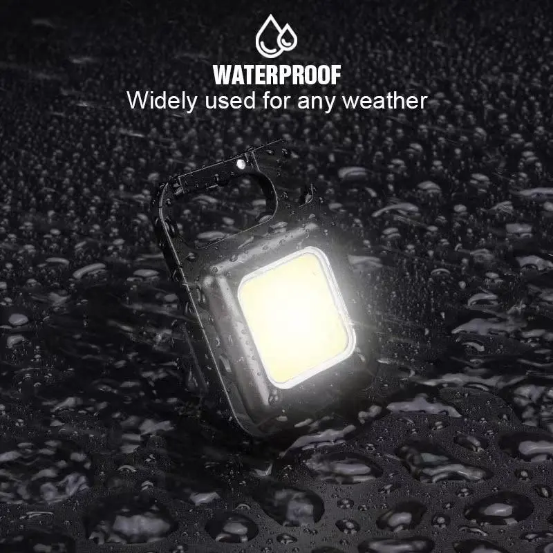 Introducing the Multi Functional COB Keychain Flashlight, a mini tool designed for outdoor enthusiasts. This rechargeable LED light is perfect for camping, hiking, fishing, night running, and more.