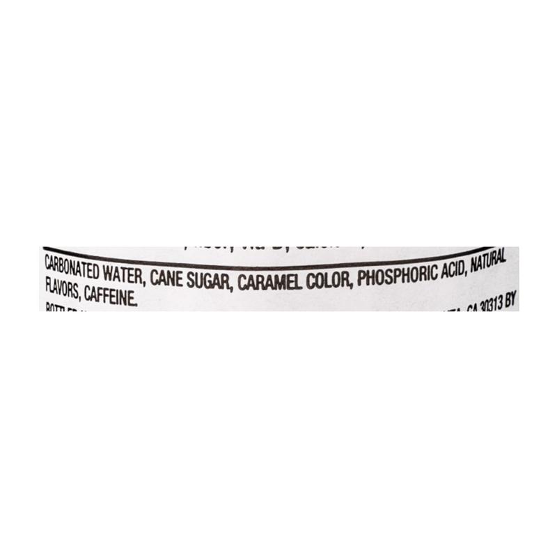 Ingredients: Carbonated water, cane sugar, caramel color, phosphoric acid, natural flavors, and caffeine.